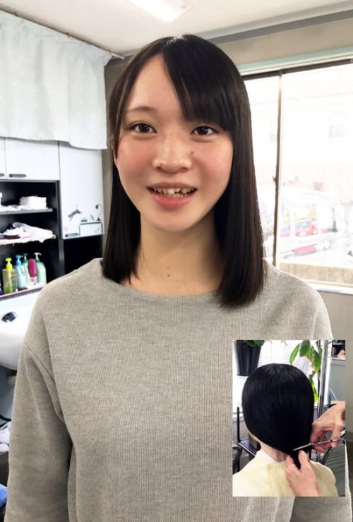 ☆サラサラ黒髪ヴァージンヘアでしたがシャンプー後に後ろにまとめてバッサリ断髪しました。