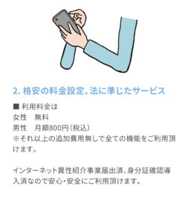 警察に異性紹介事業届出済で身分証確認導入済なので、安心安全安価にお使いいただけます。