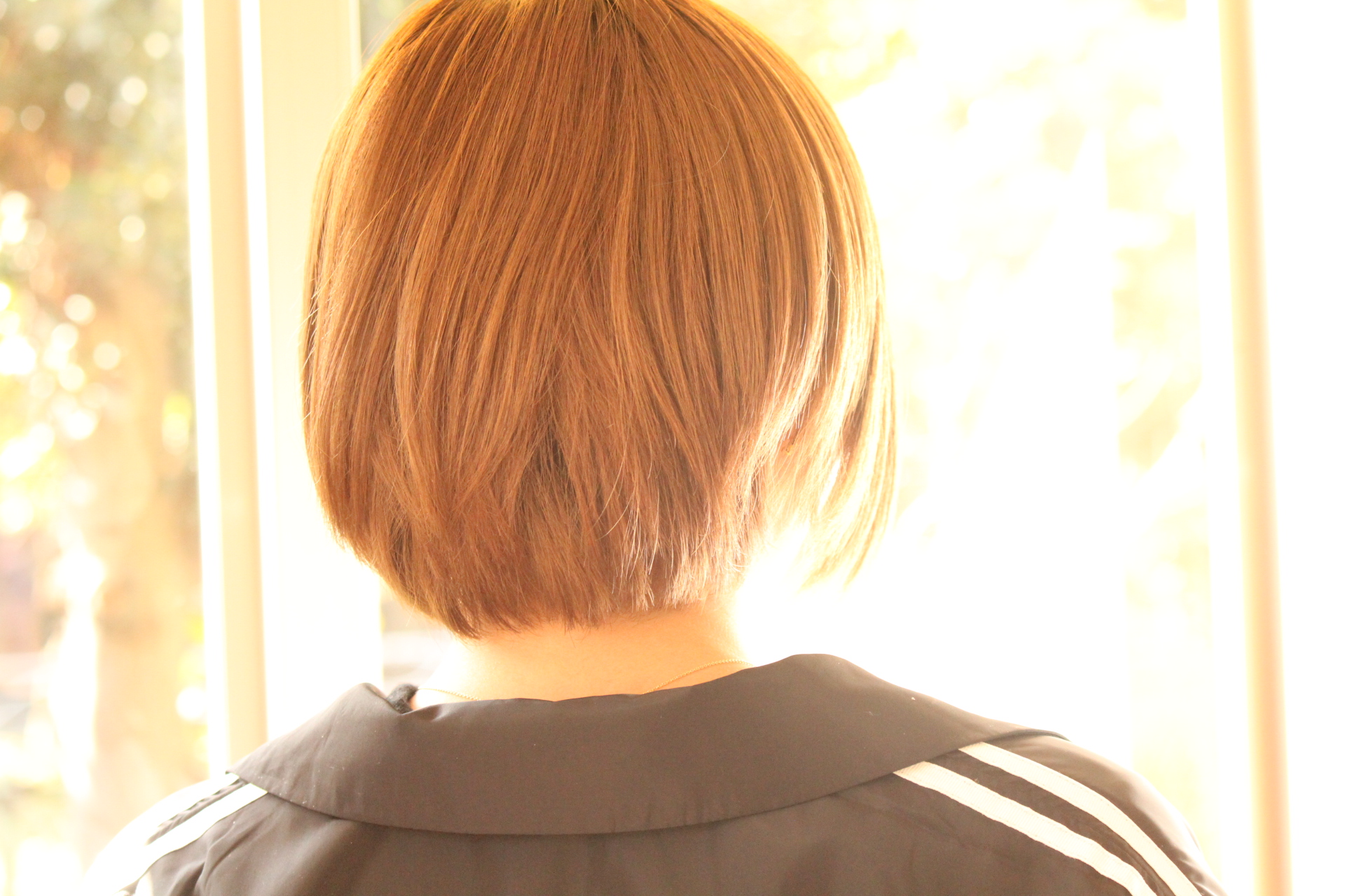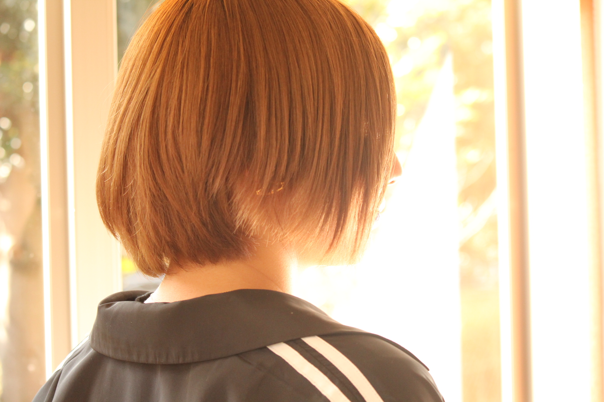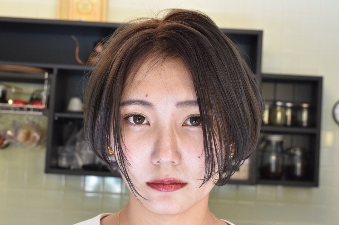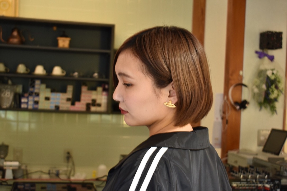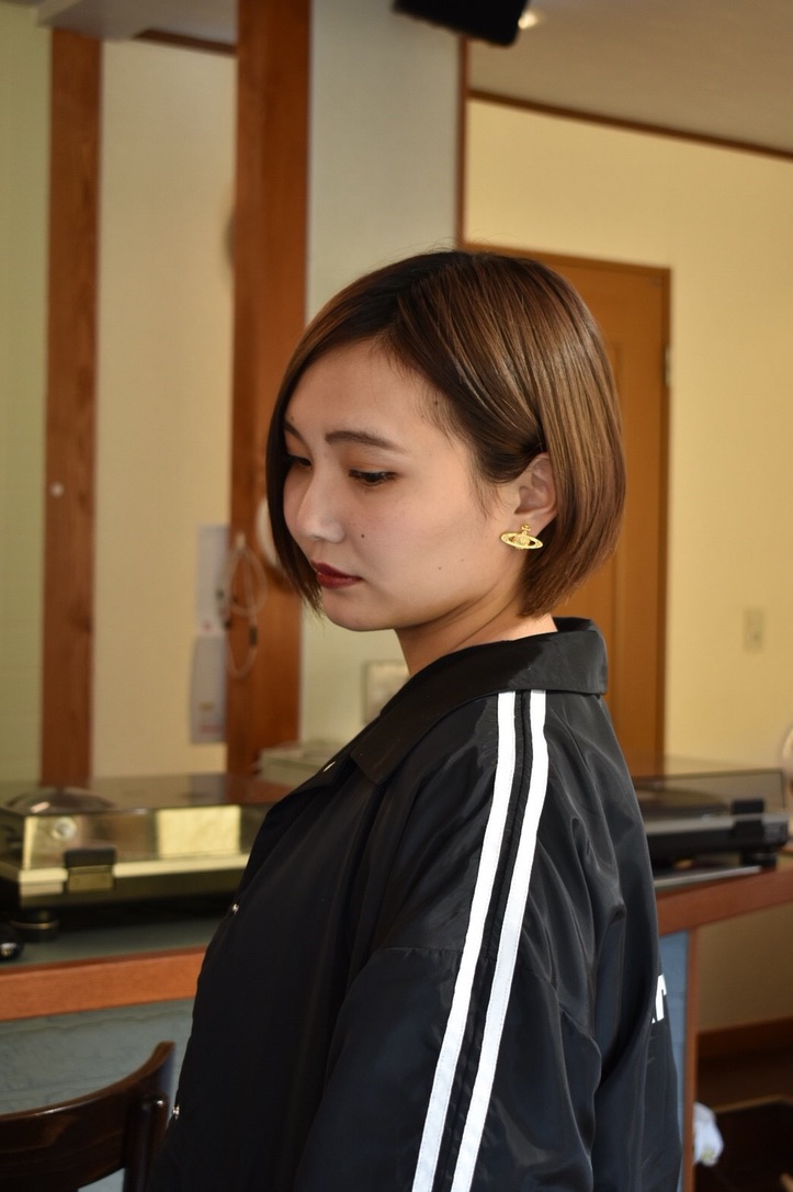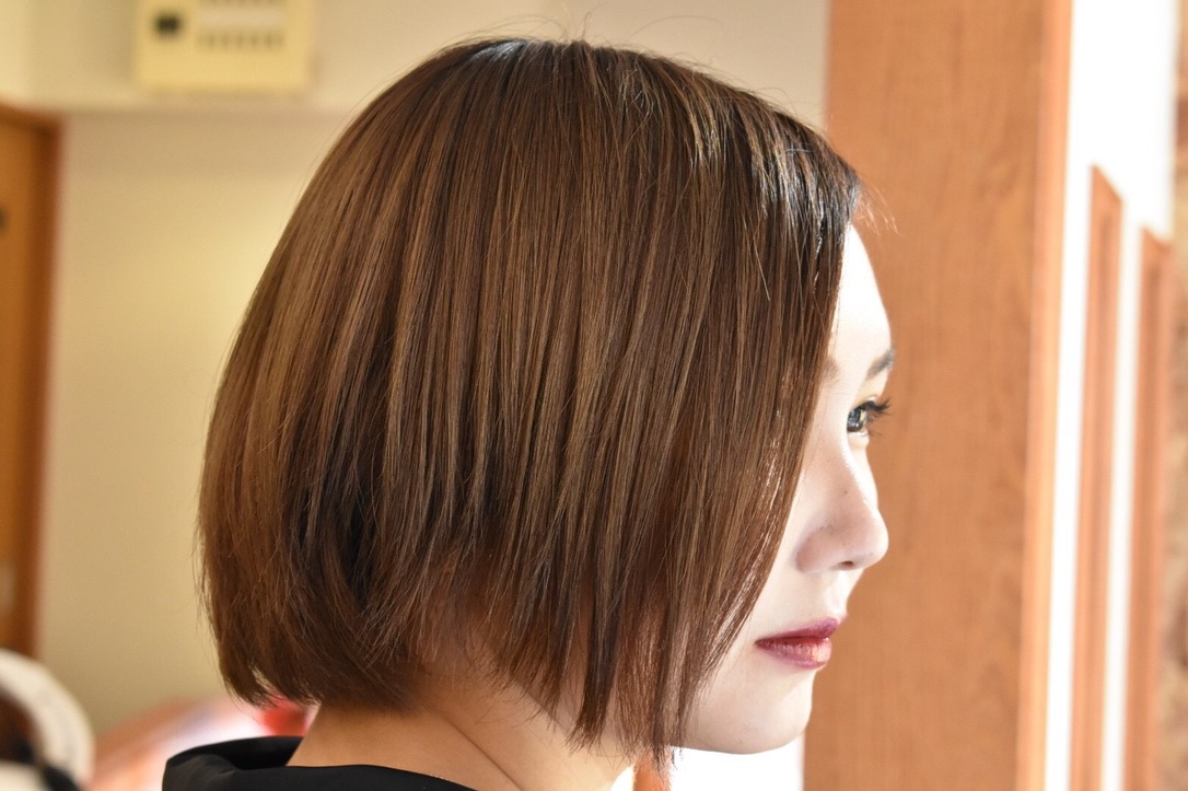 伸びきった不揃いのボブヘアを、きれいに整えました。