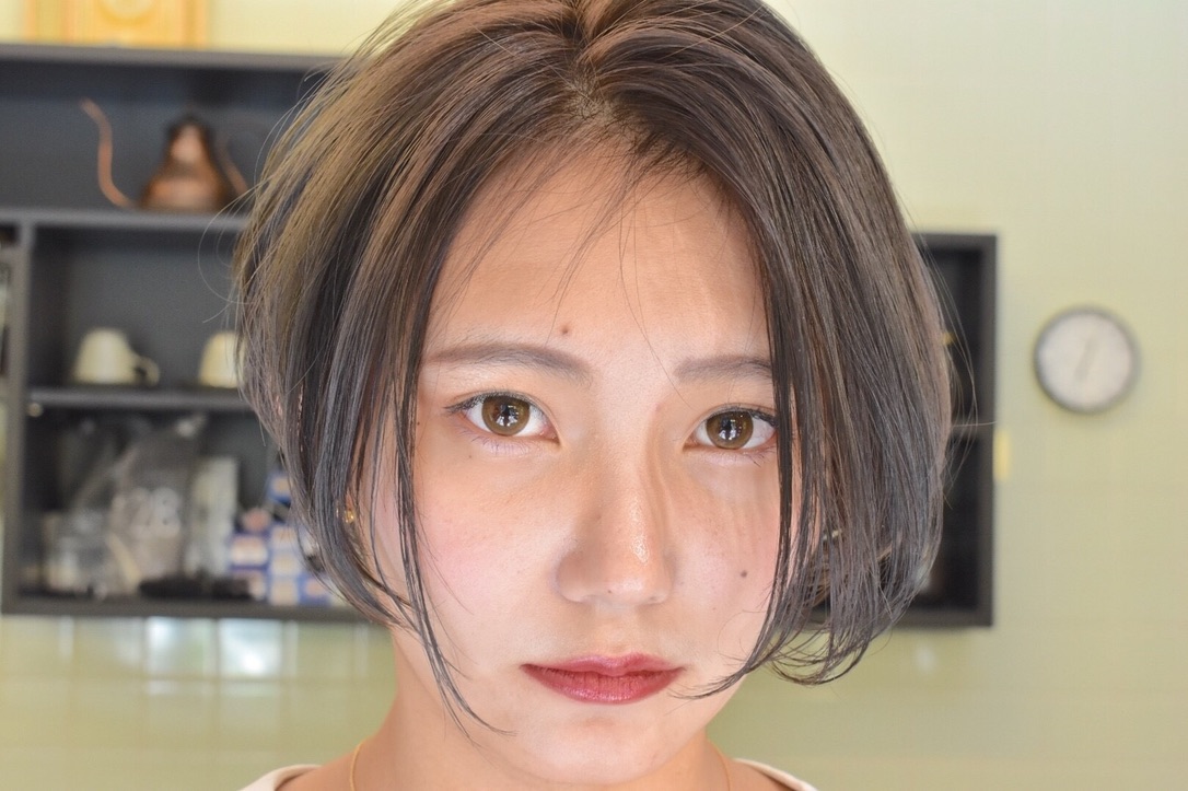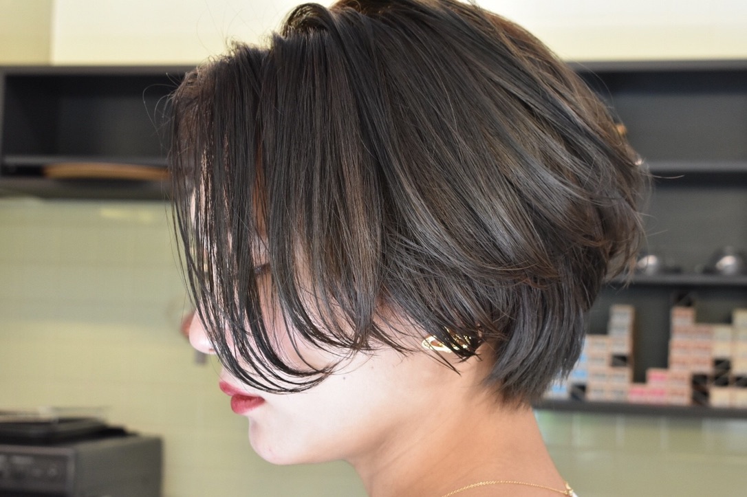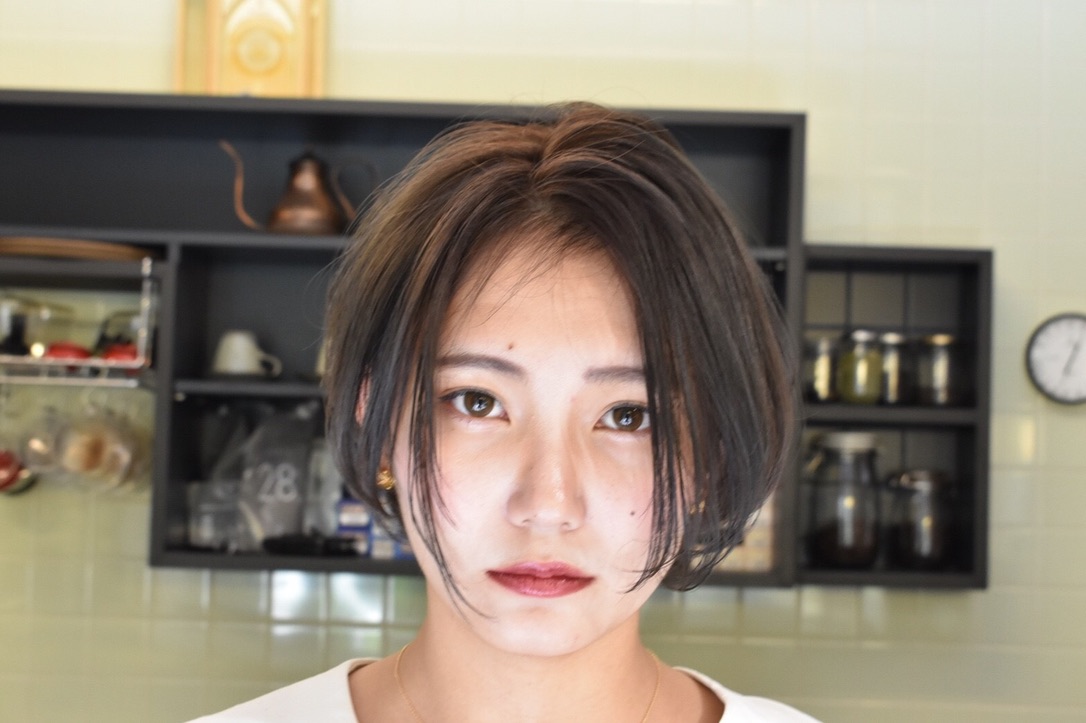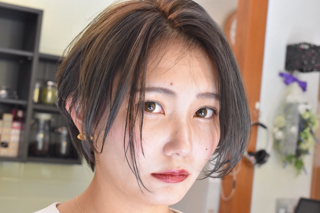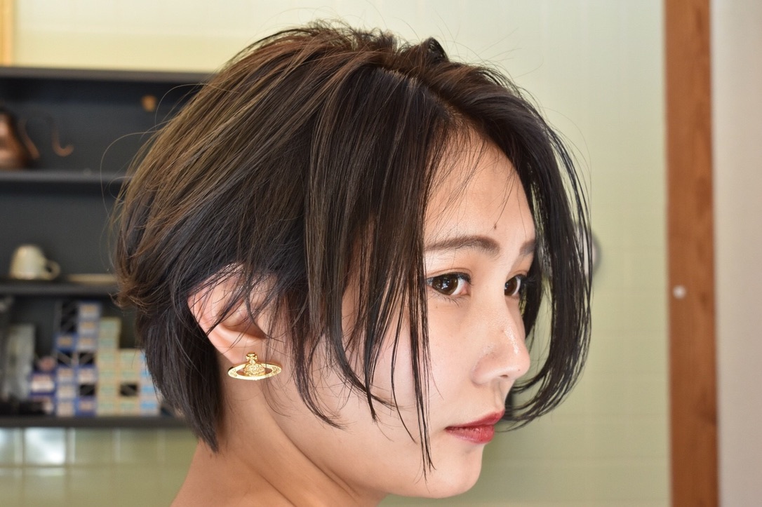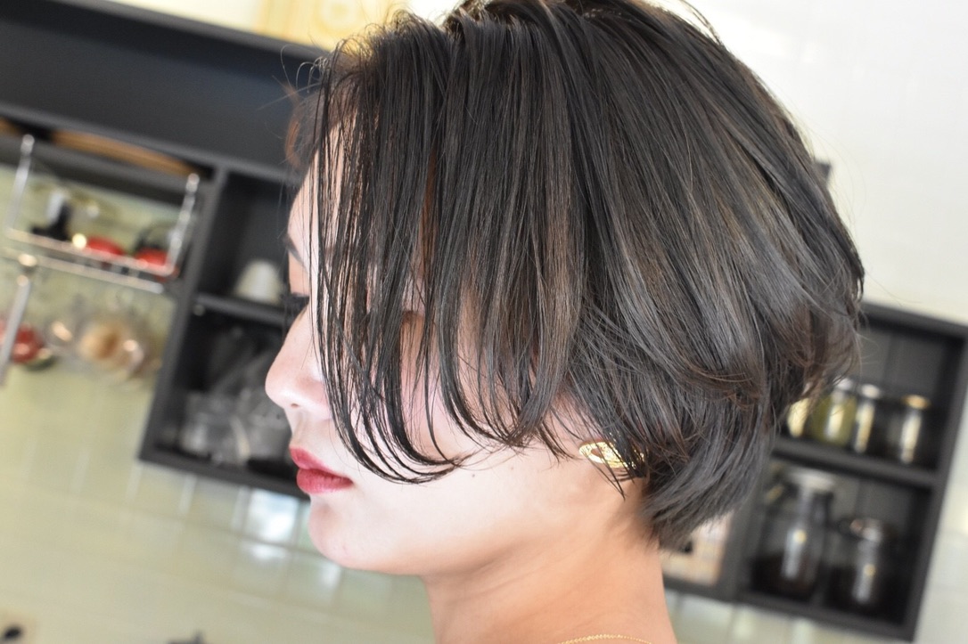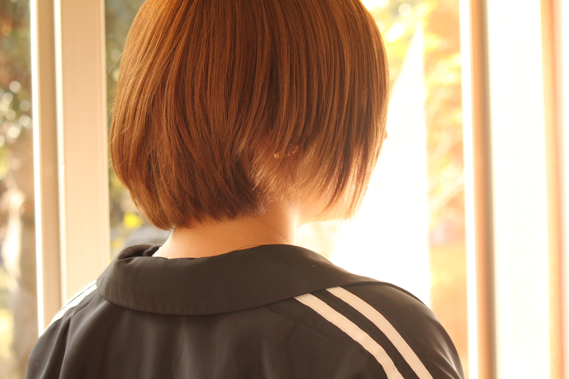 伸びきった不揃いのボブヘアを、きれいに整えました。