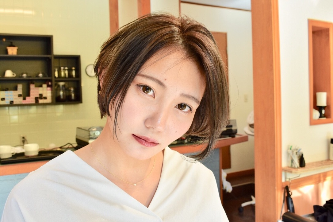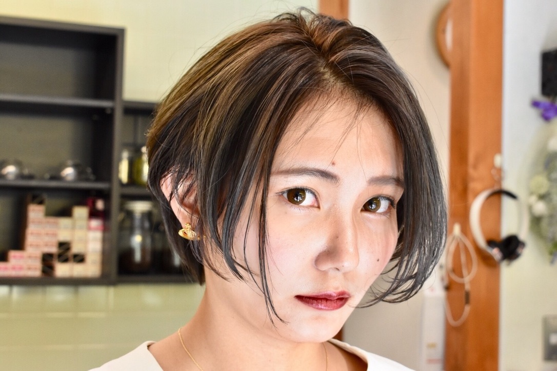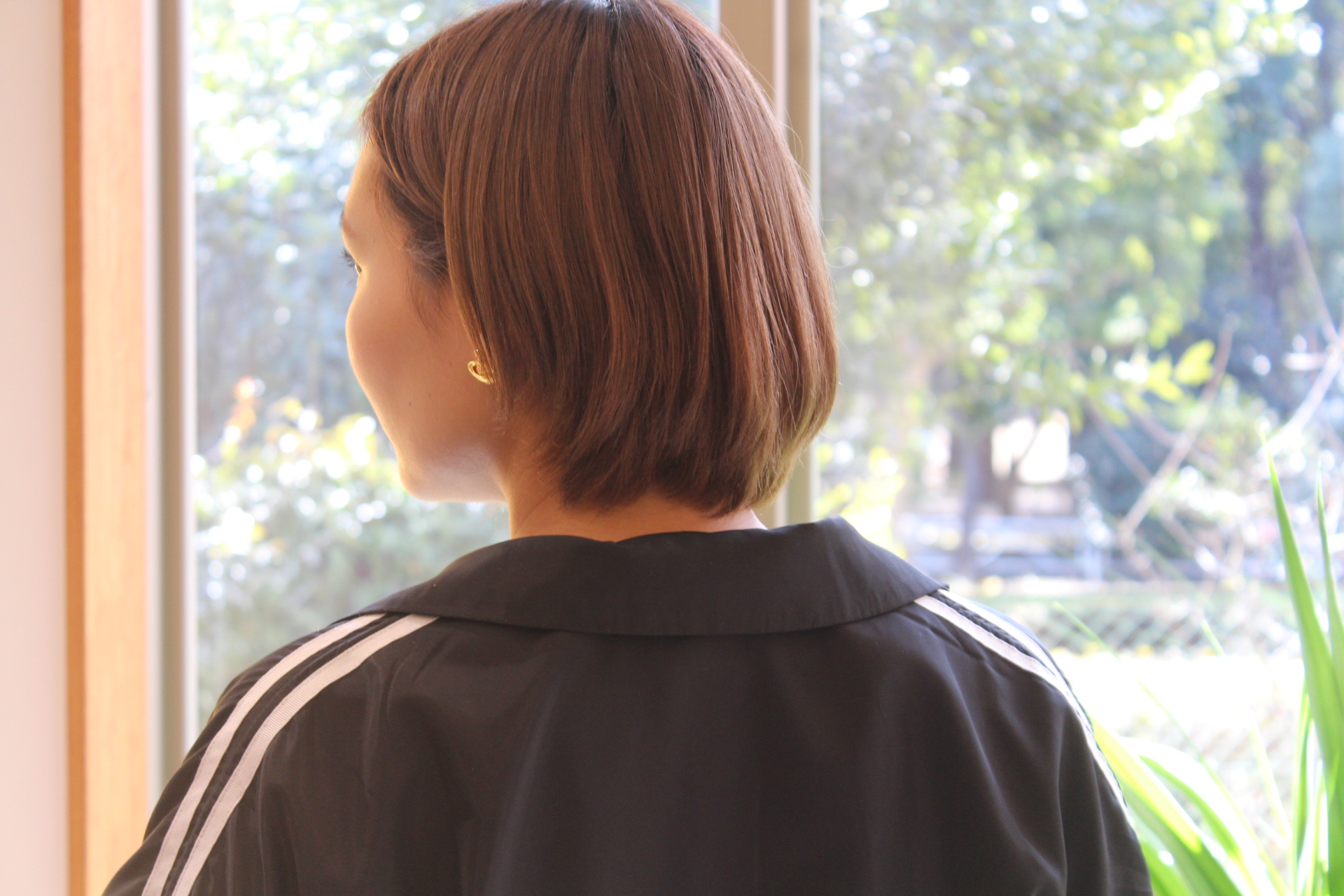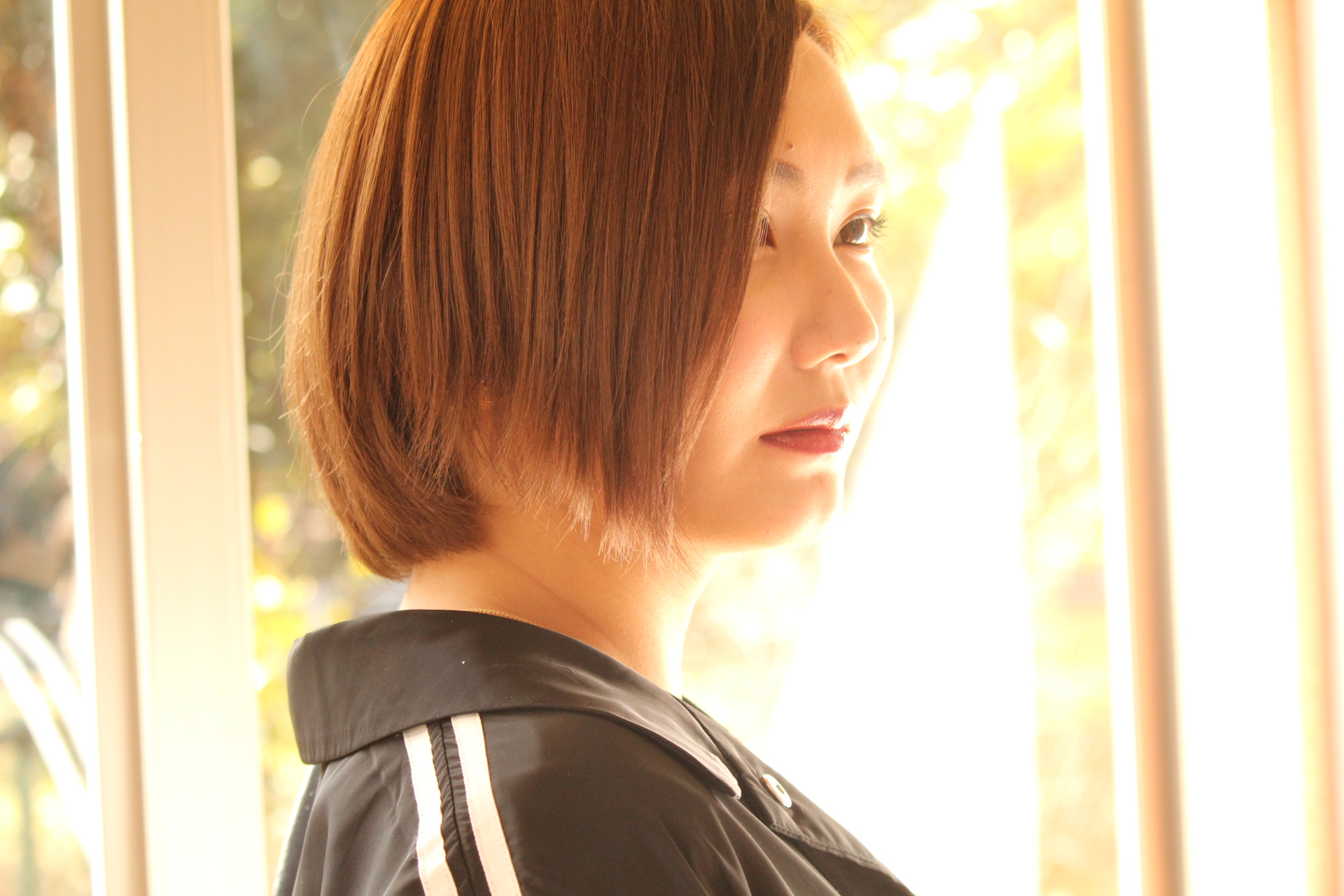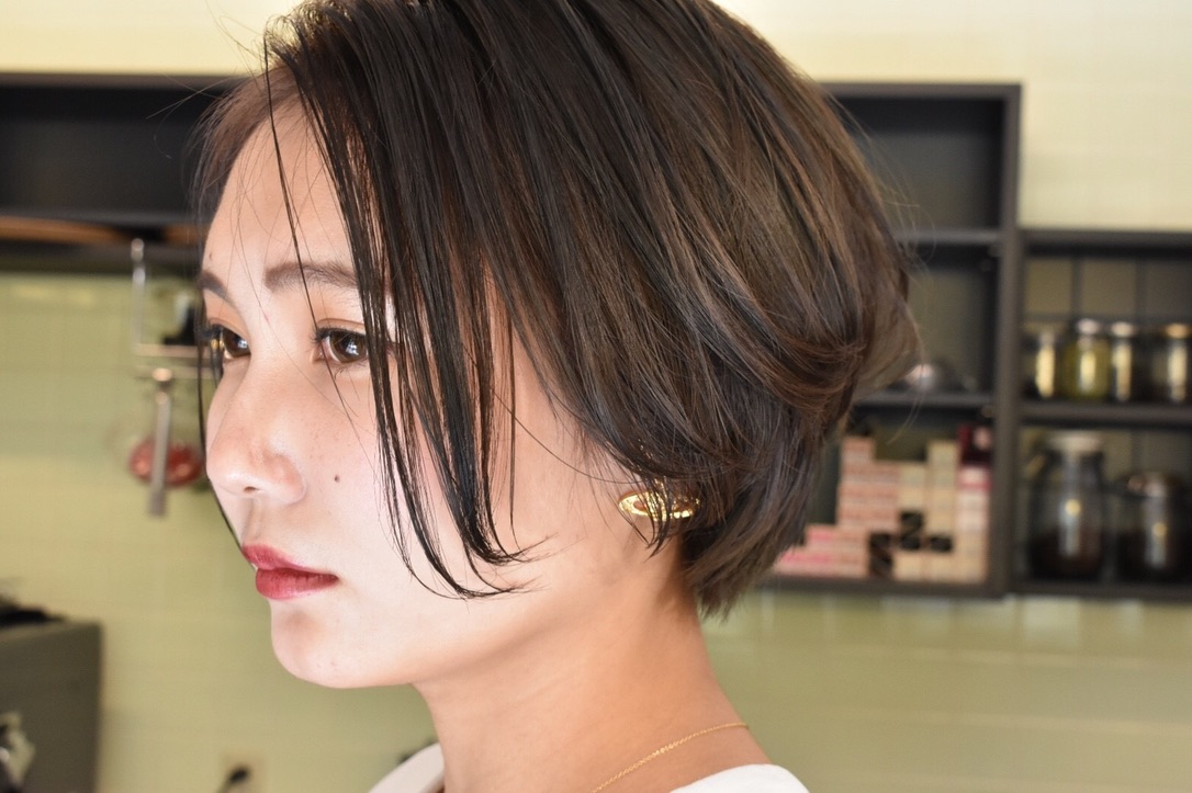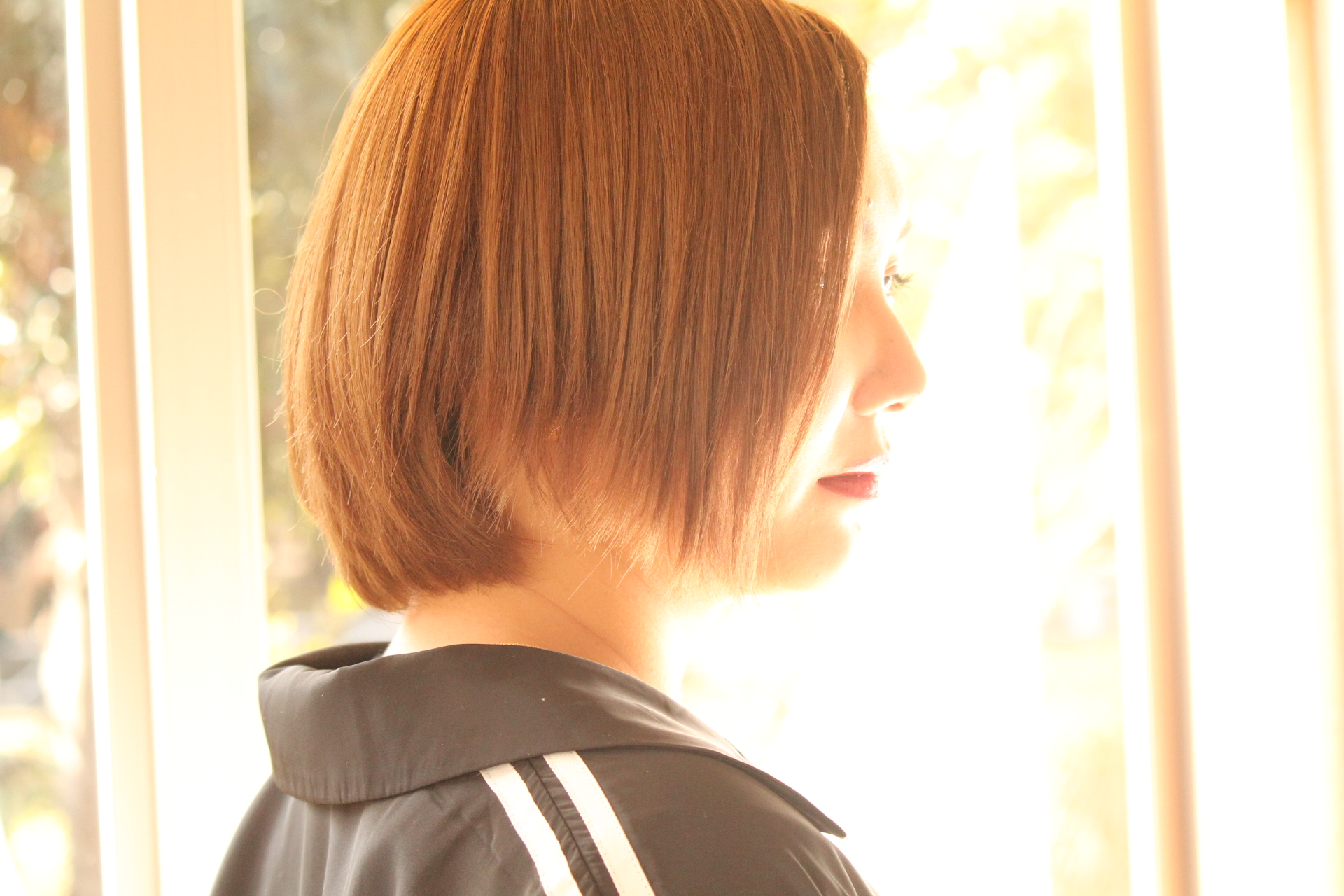 伸びきった不揃いのボブヘアを、きれいに整えました。