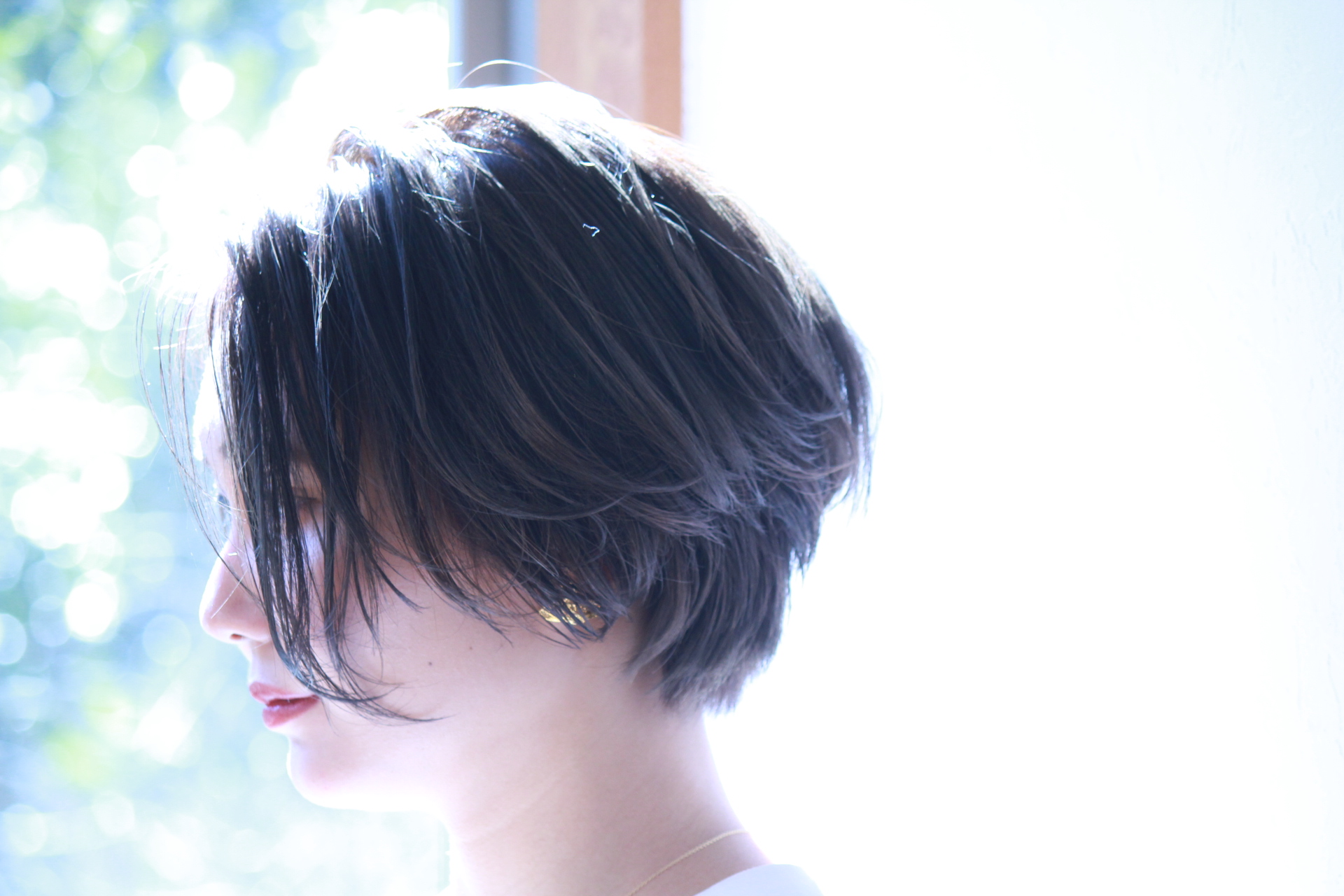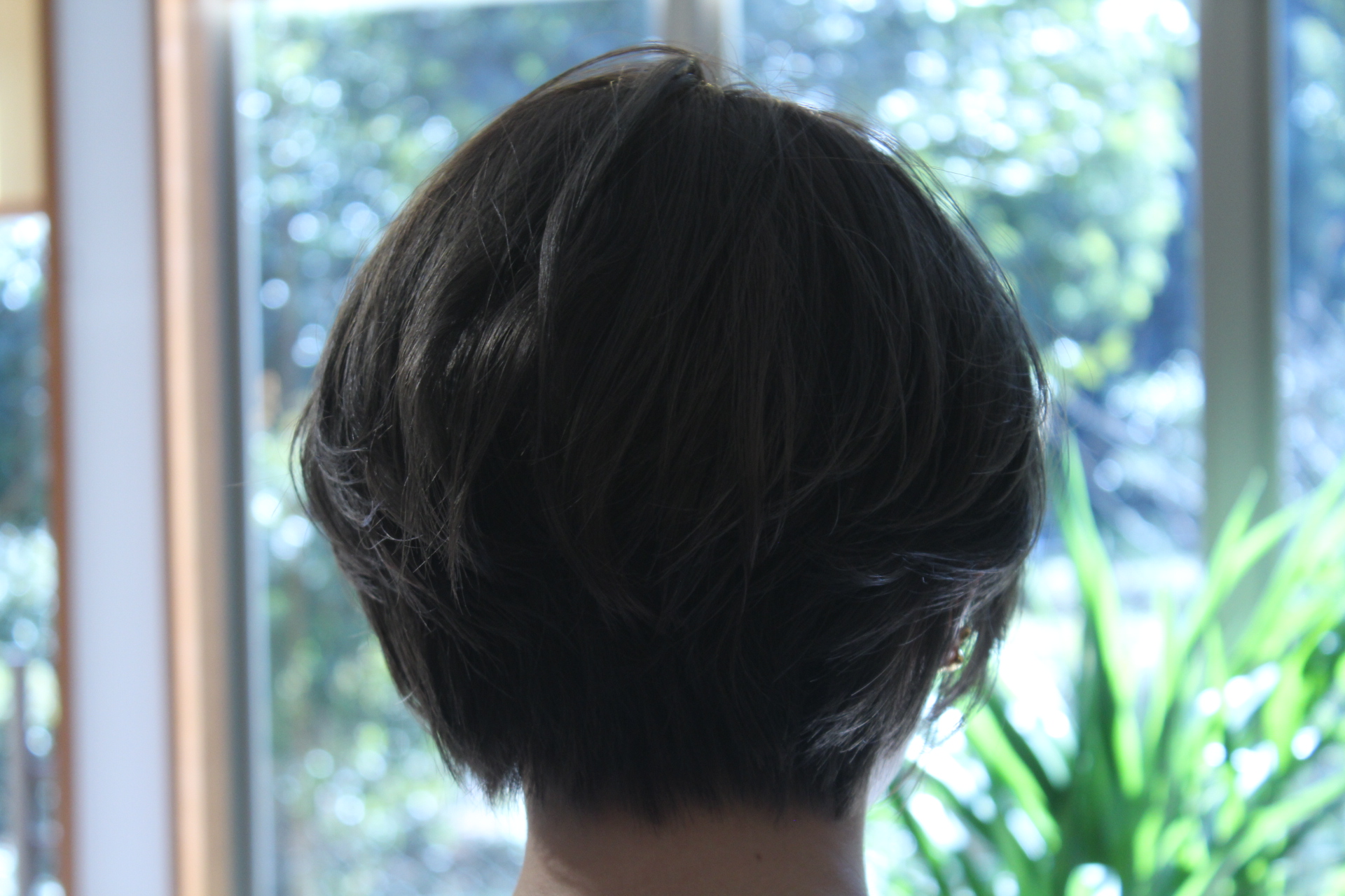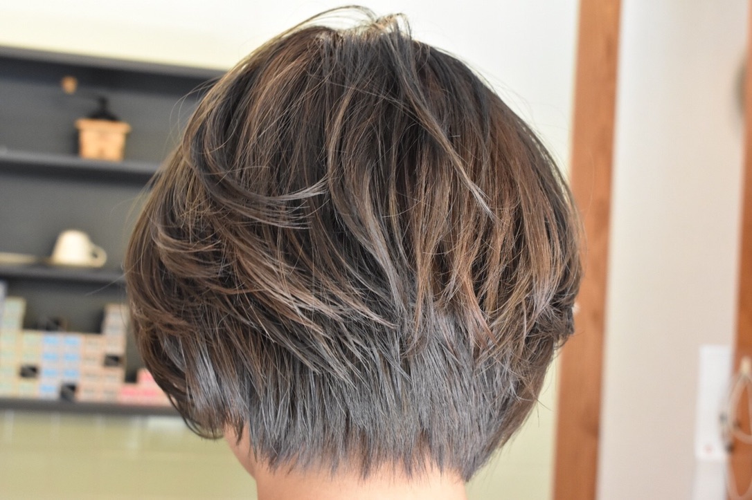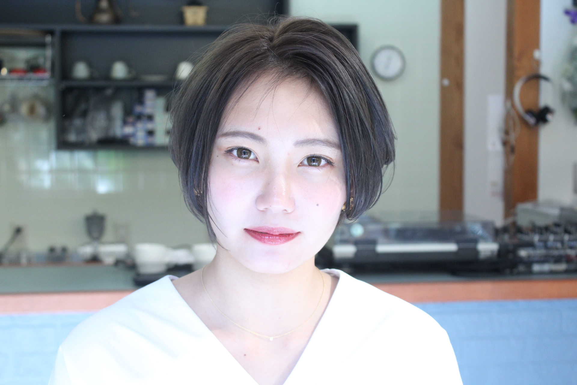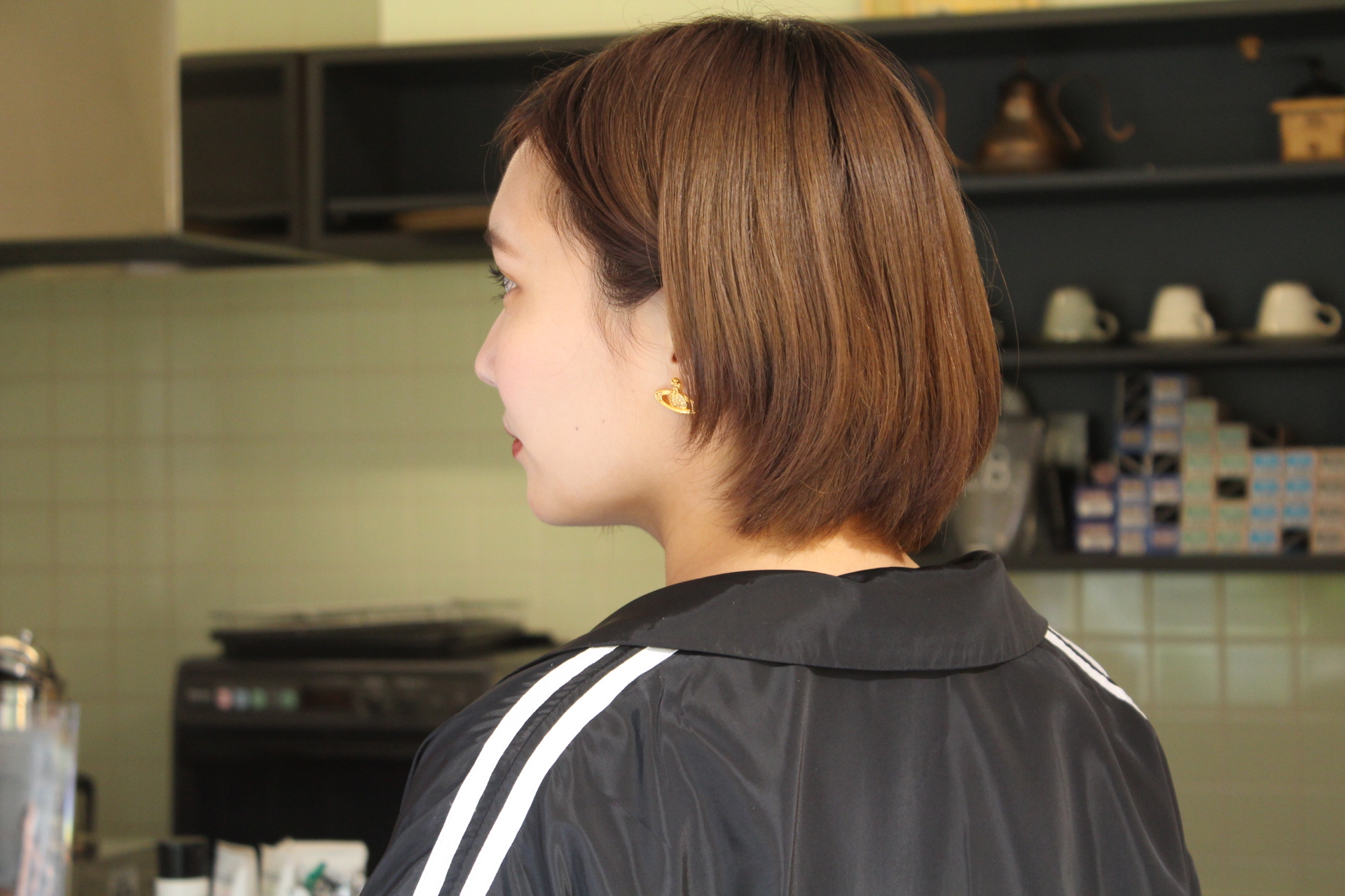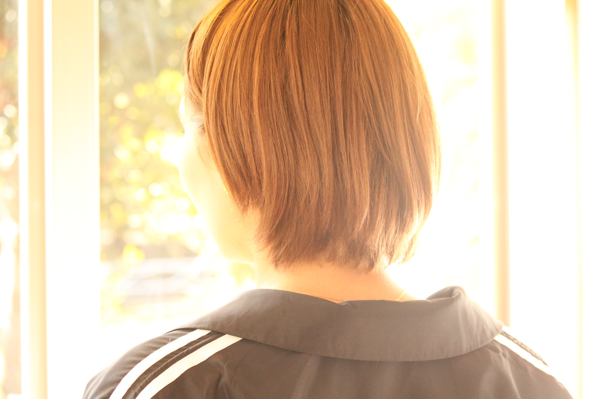 伸びきった不揃いのボブヘアを、きれいに整えました。