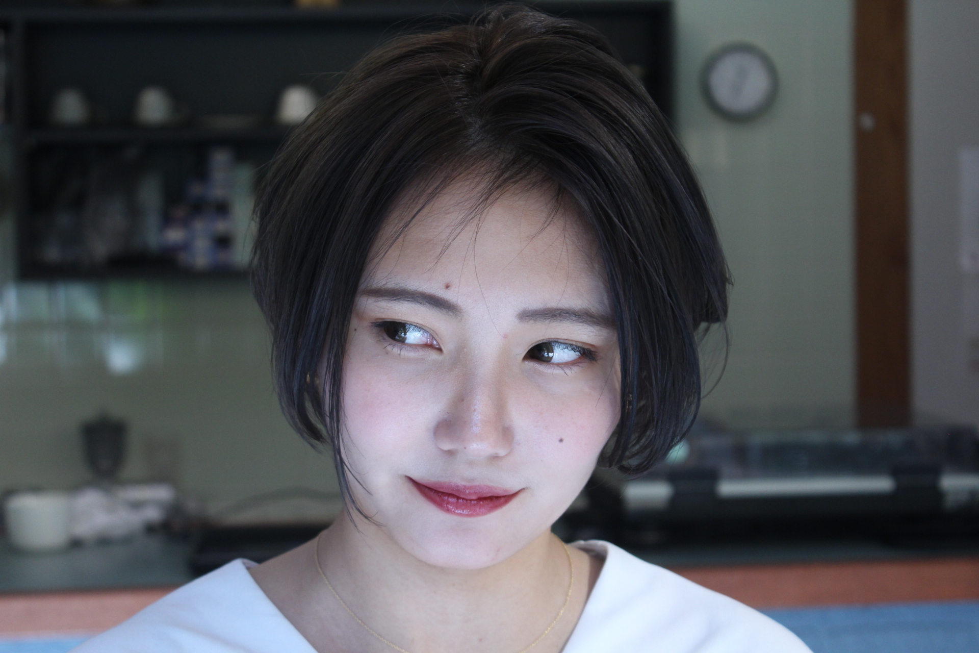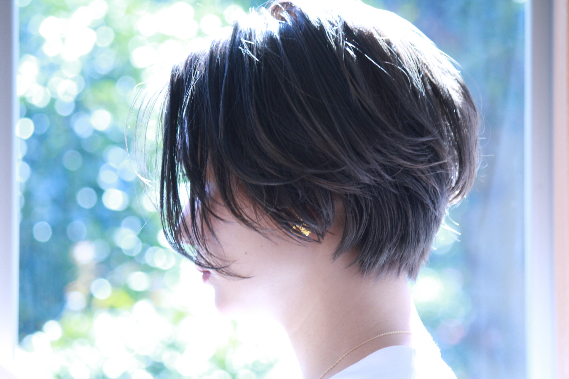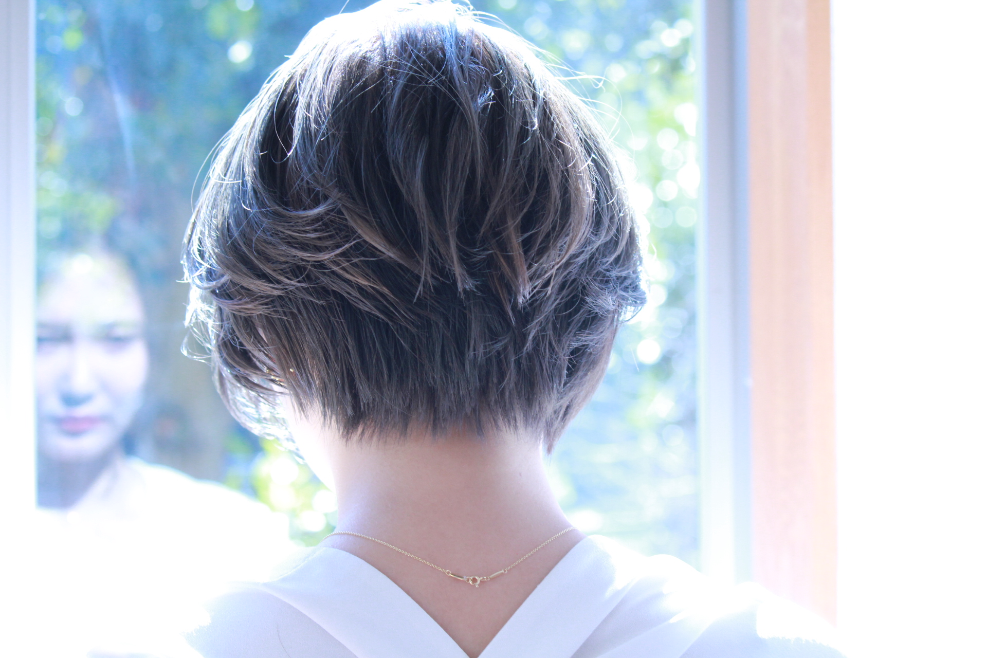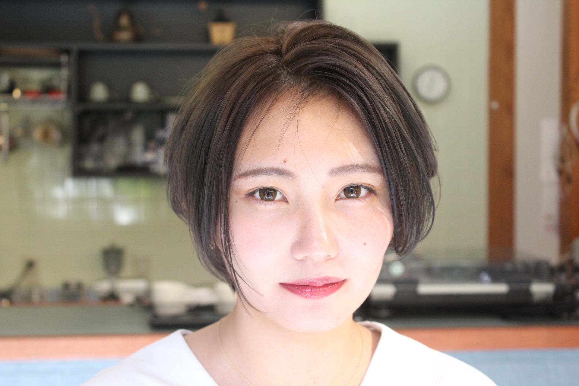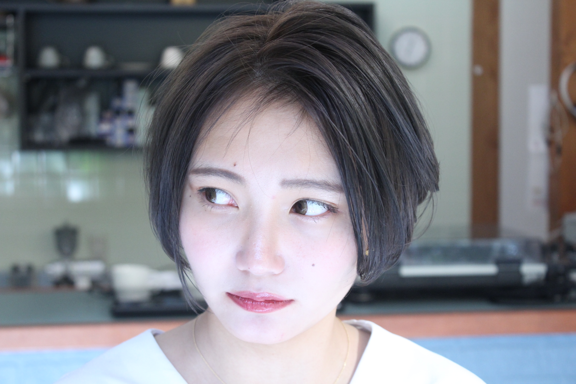 伸びきった不揃いのボブヘアを、きれいに整えました。