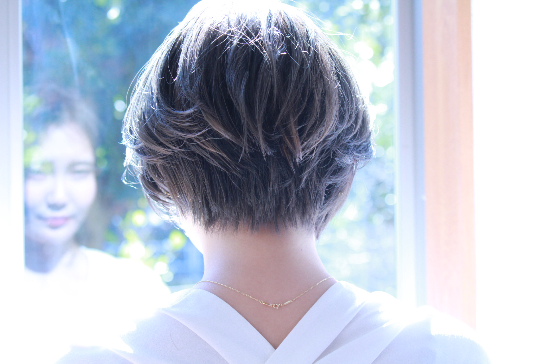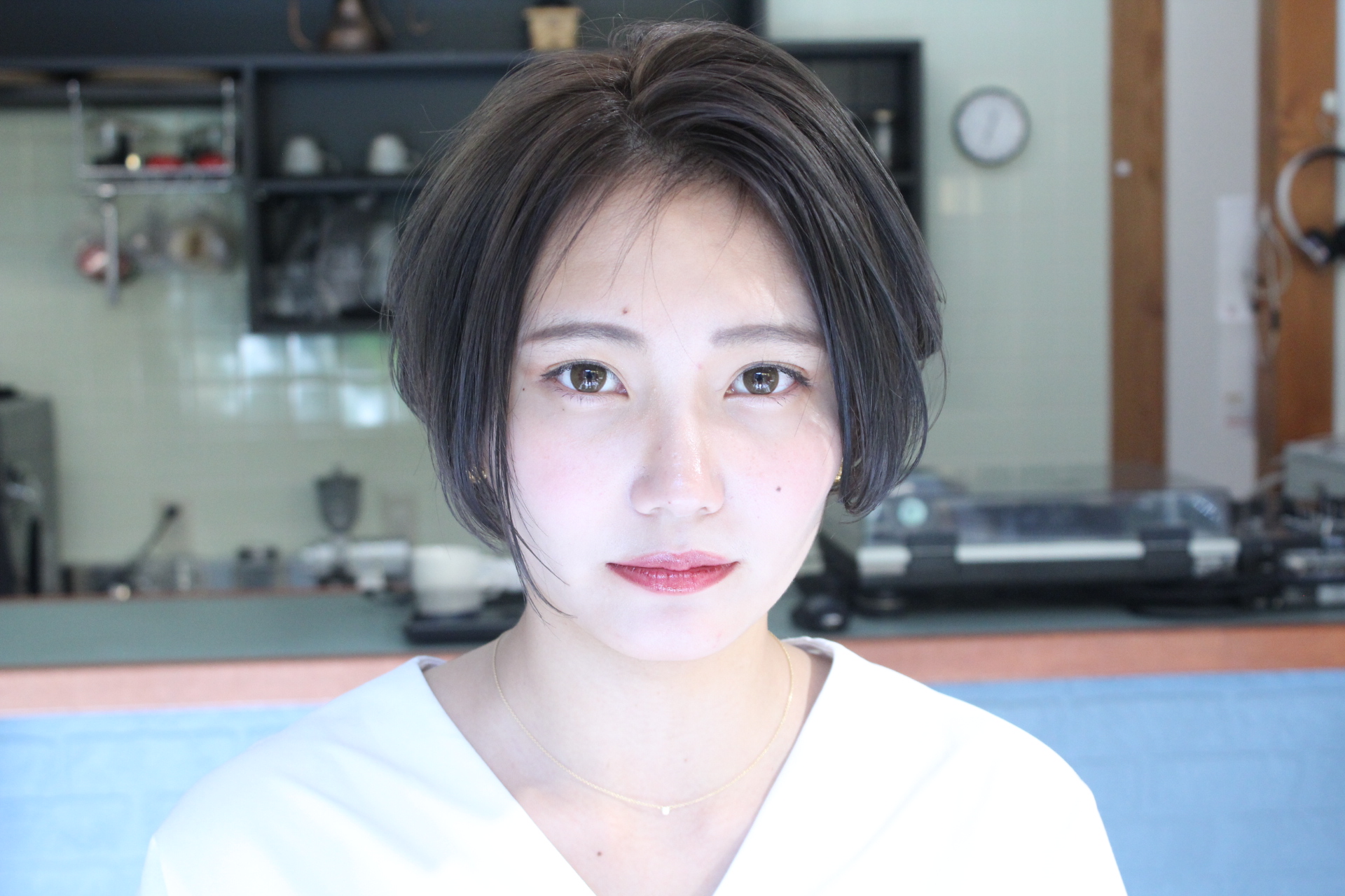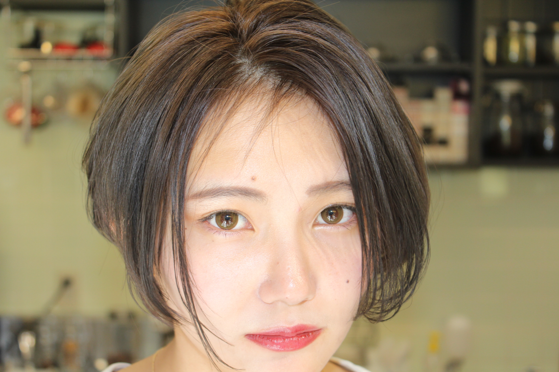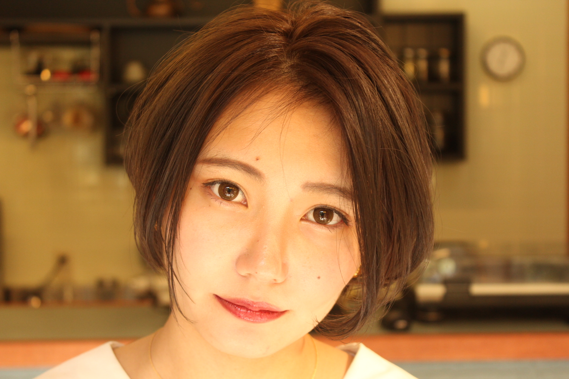 伸びきった不揃いのボブヘアを、きれいに整えました。