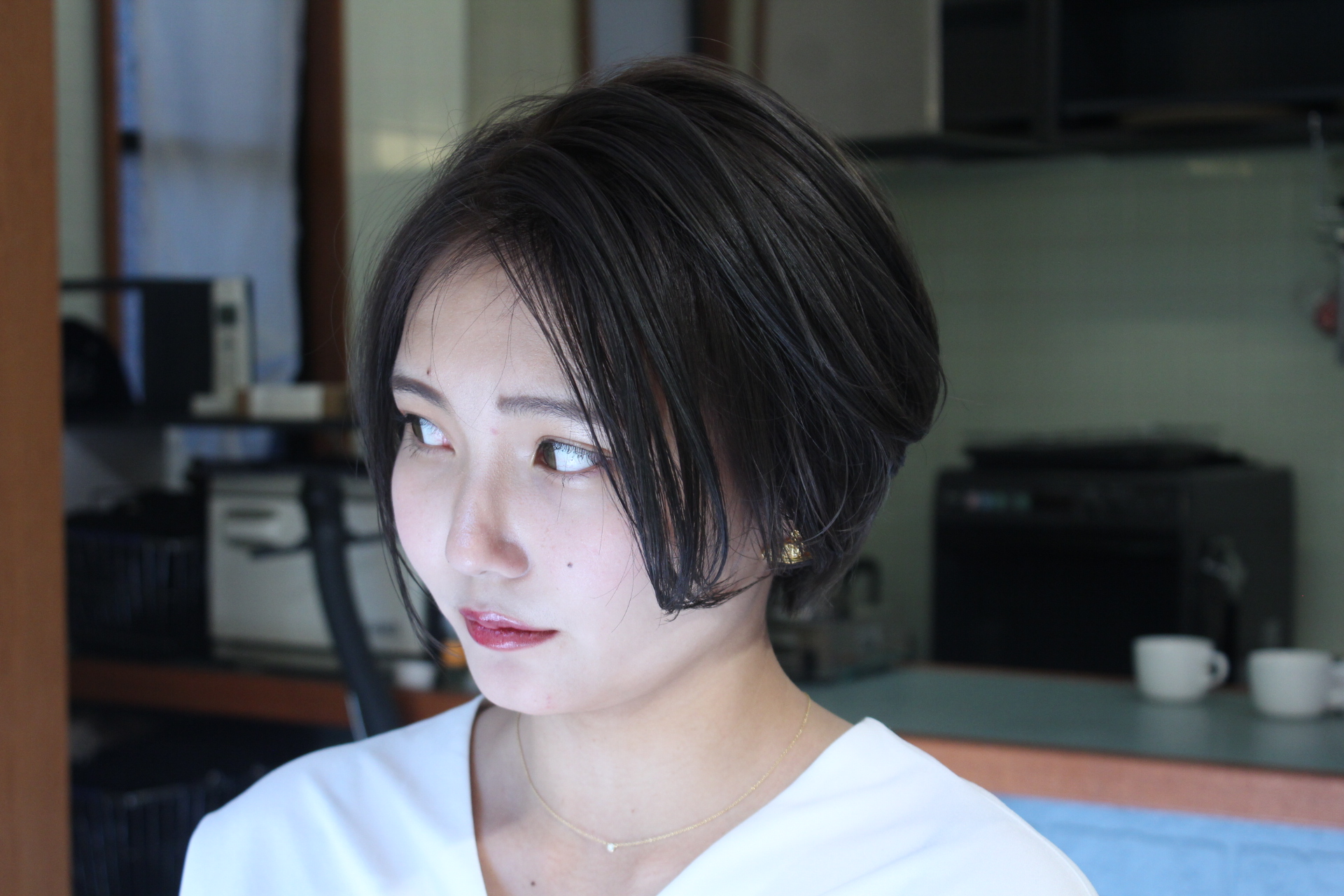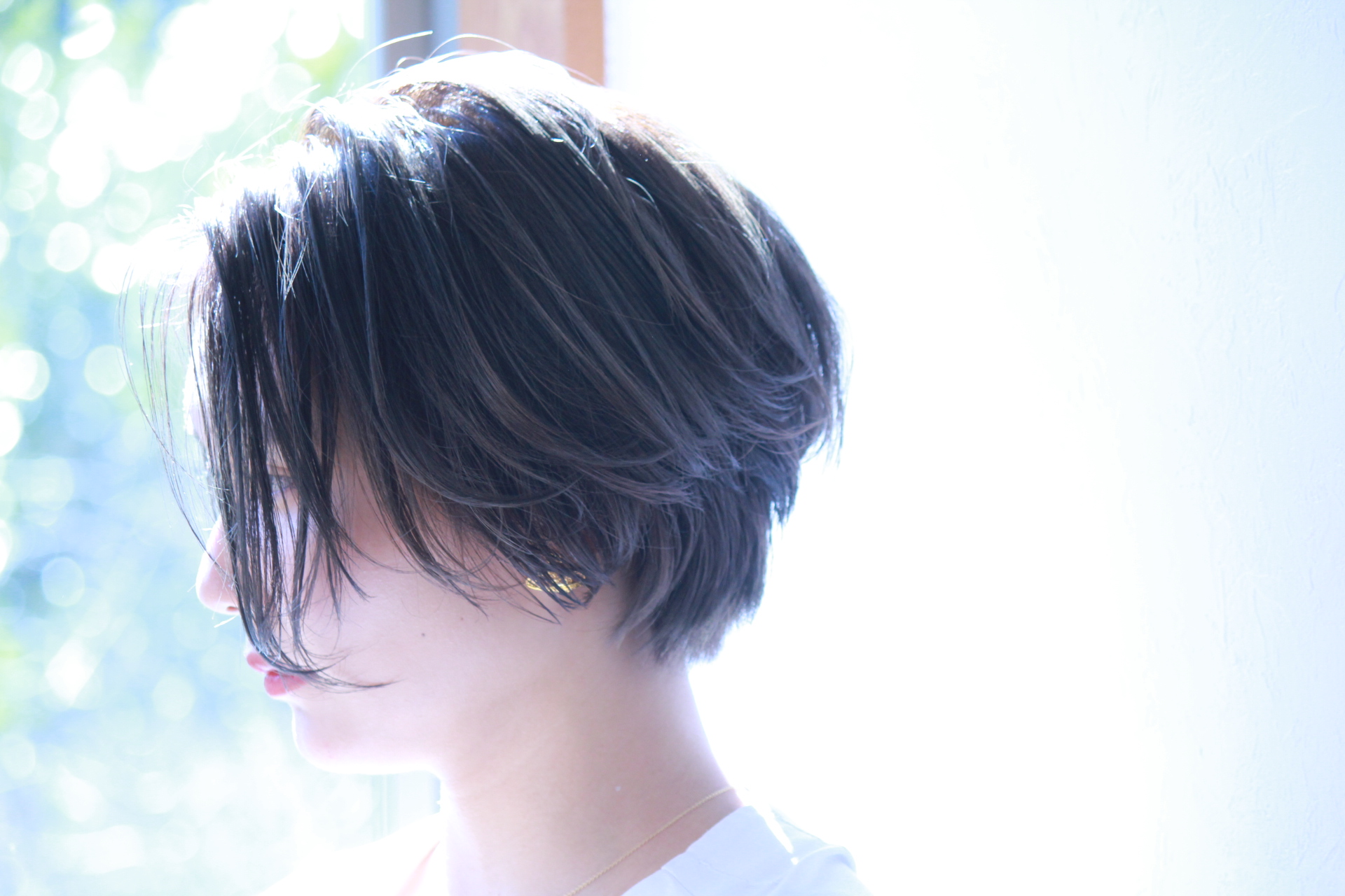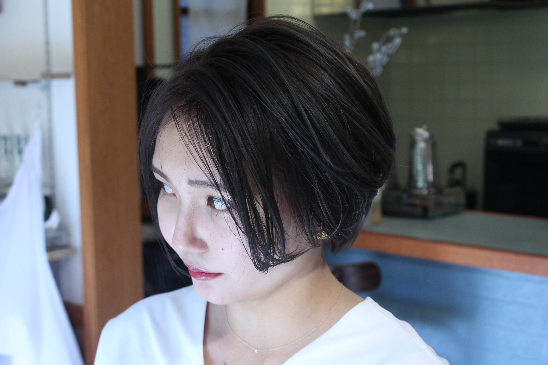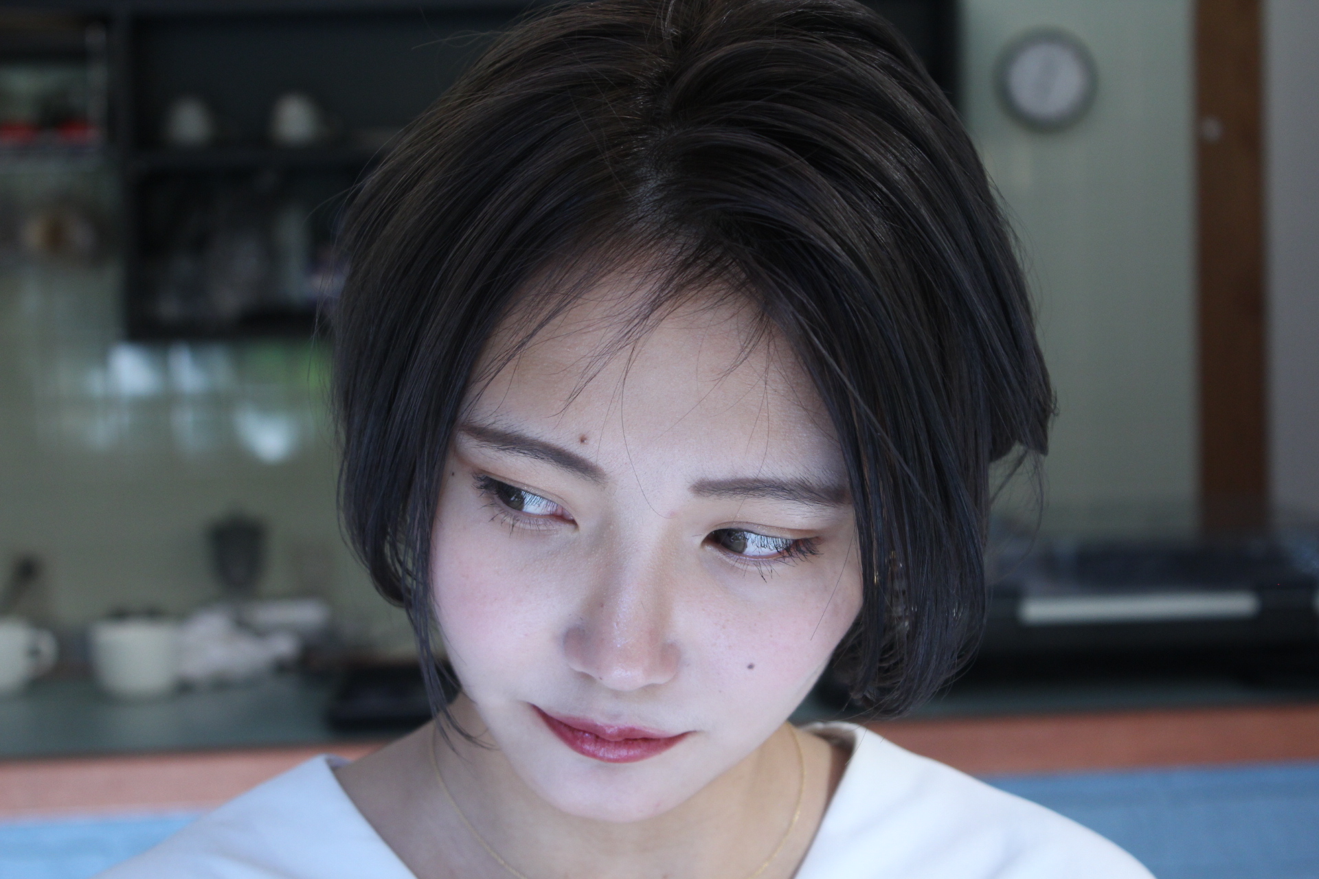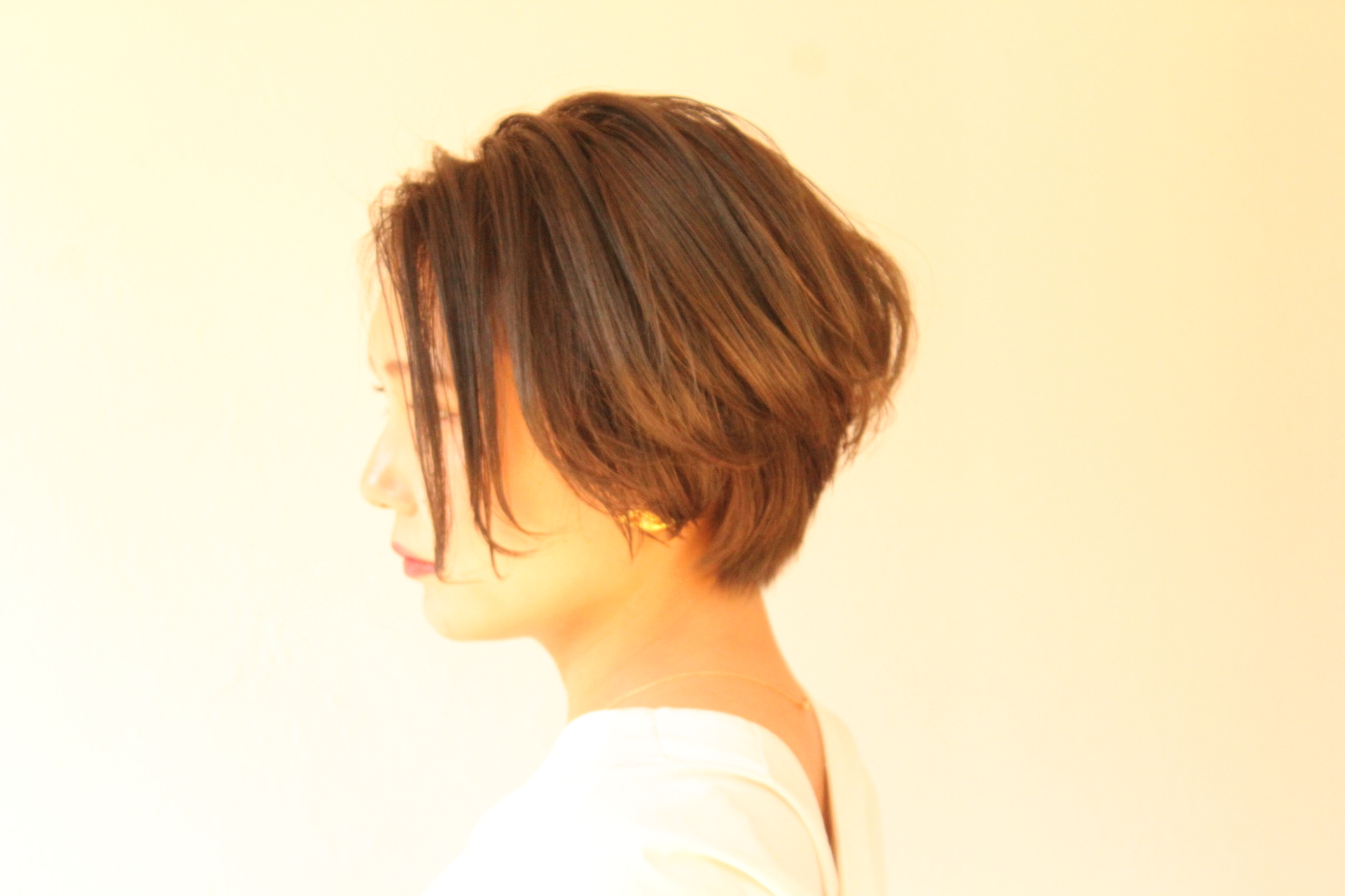 伸びきった不揃いのボブヘアを、きれいに整えました。
