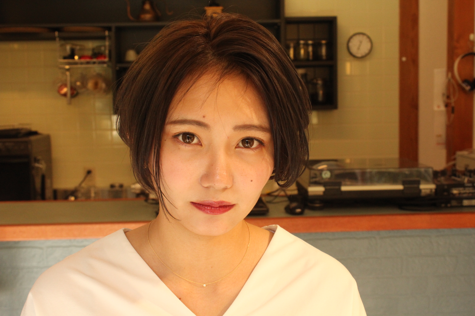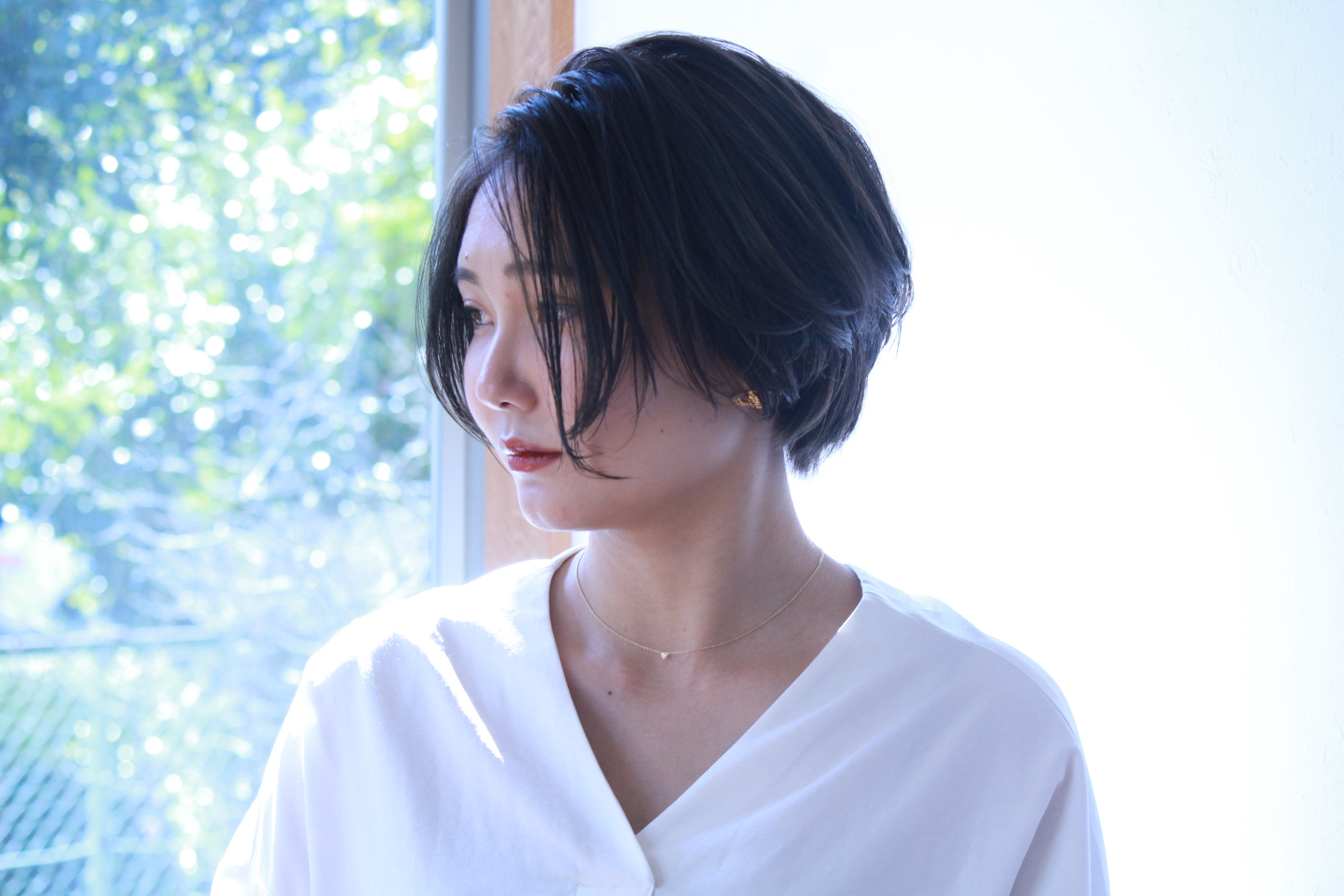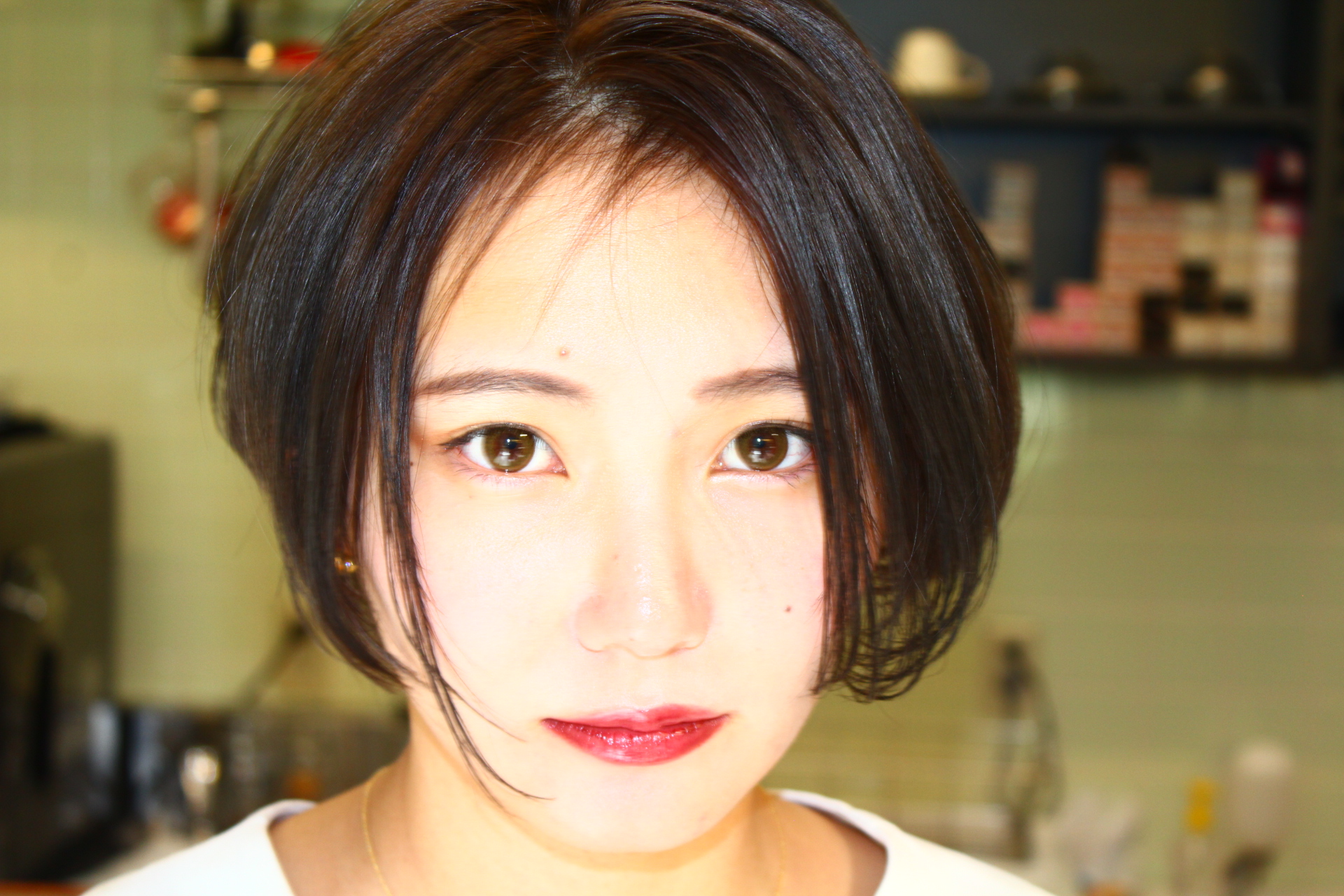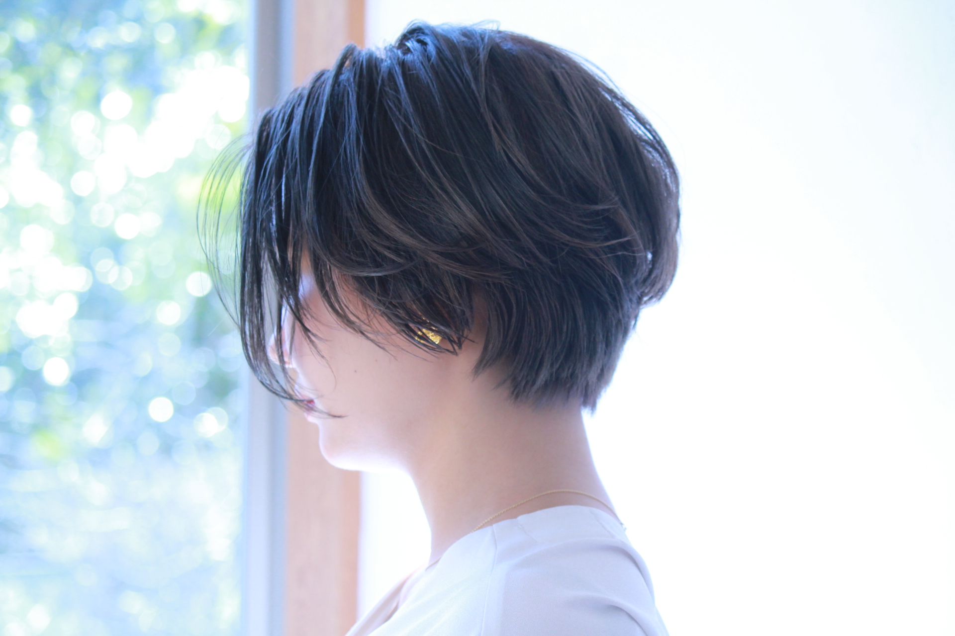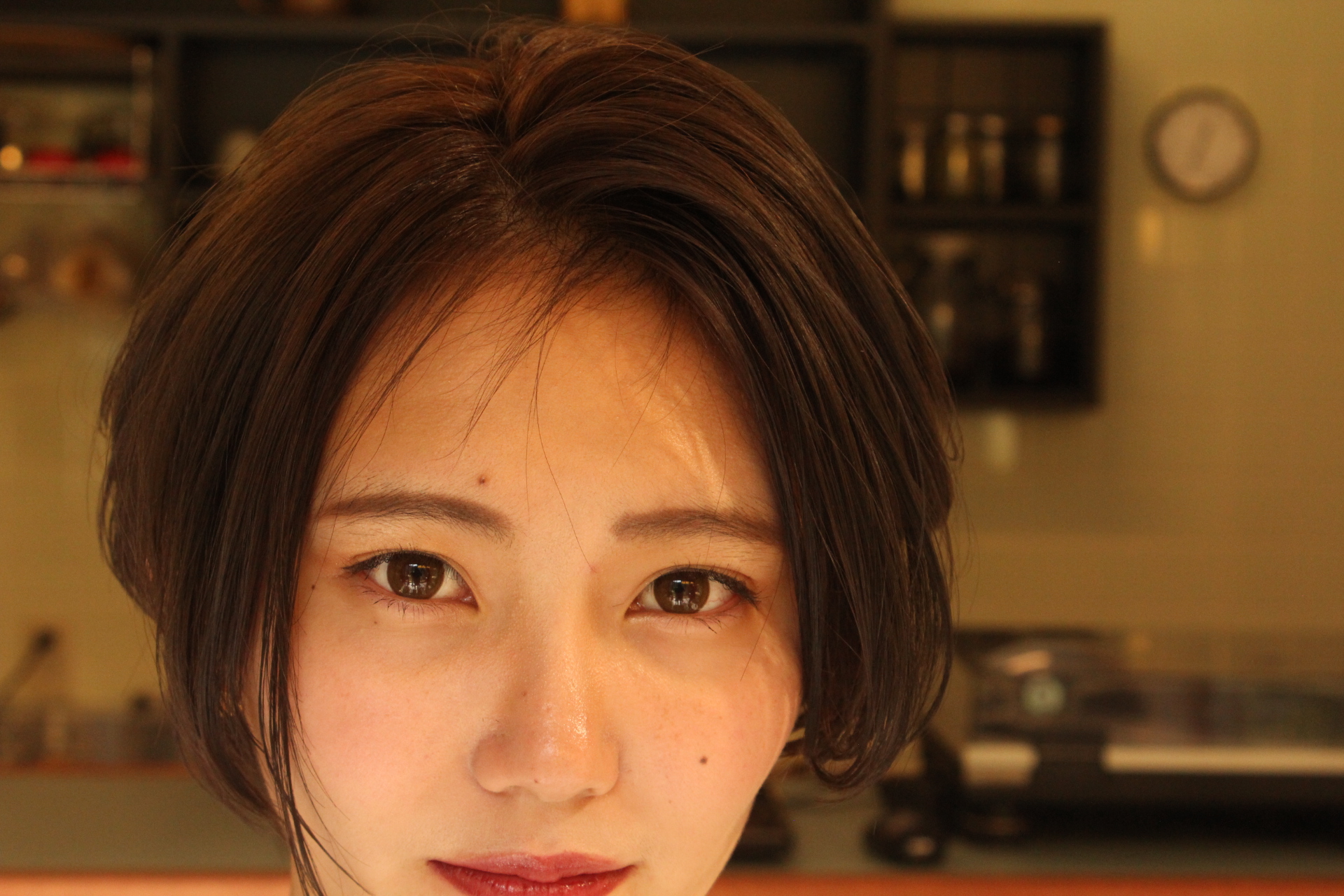 伸びきった不揃いのボブヘアを、きれいに整えました。