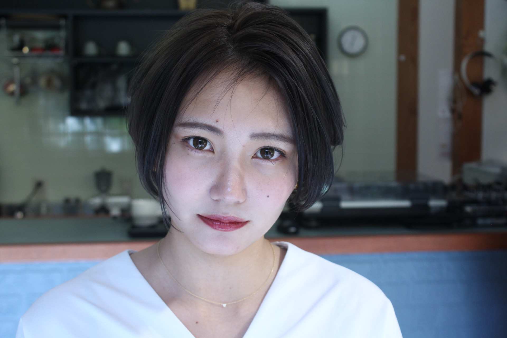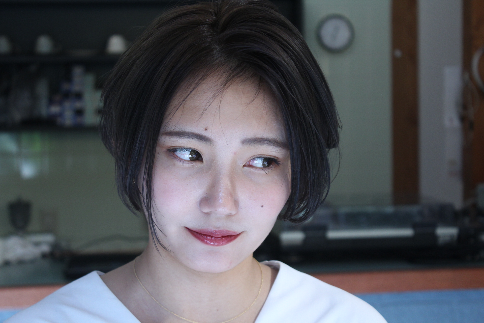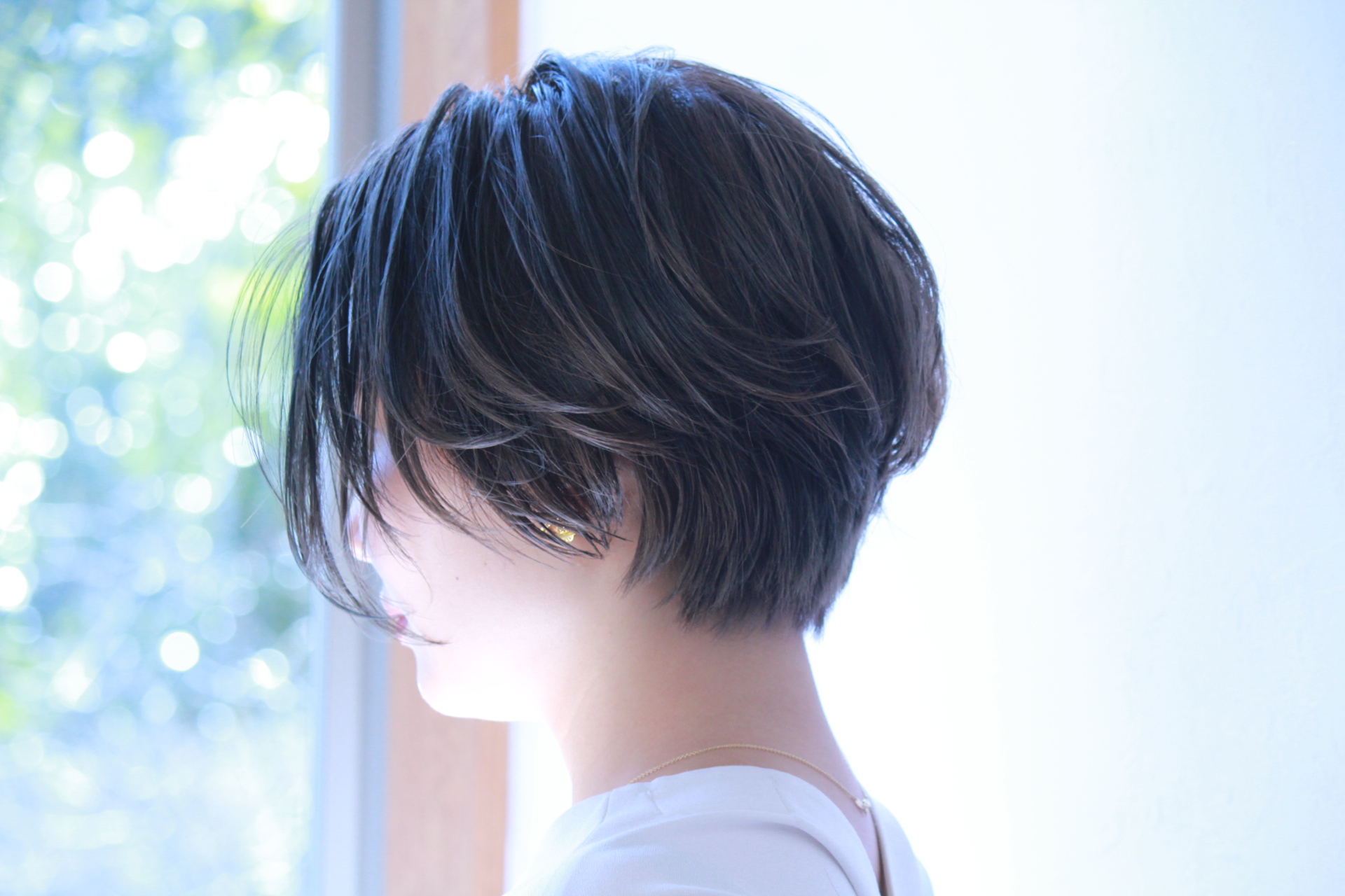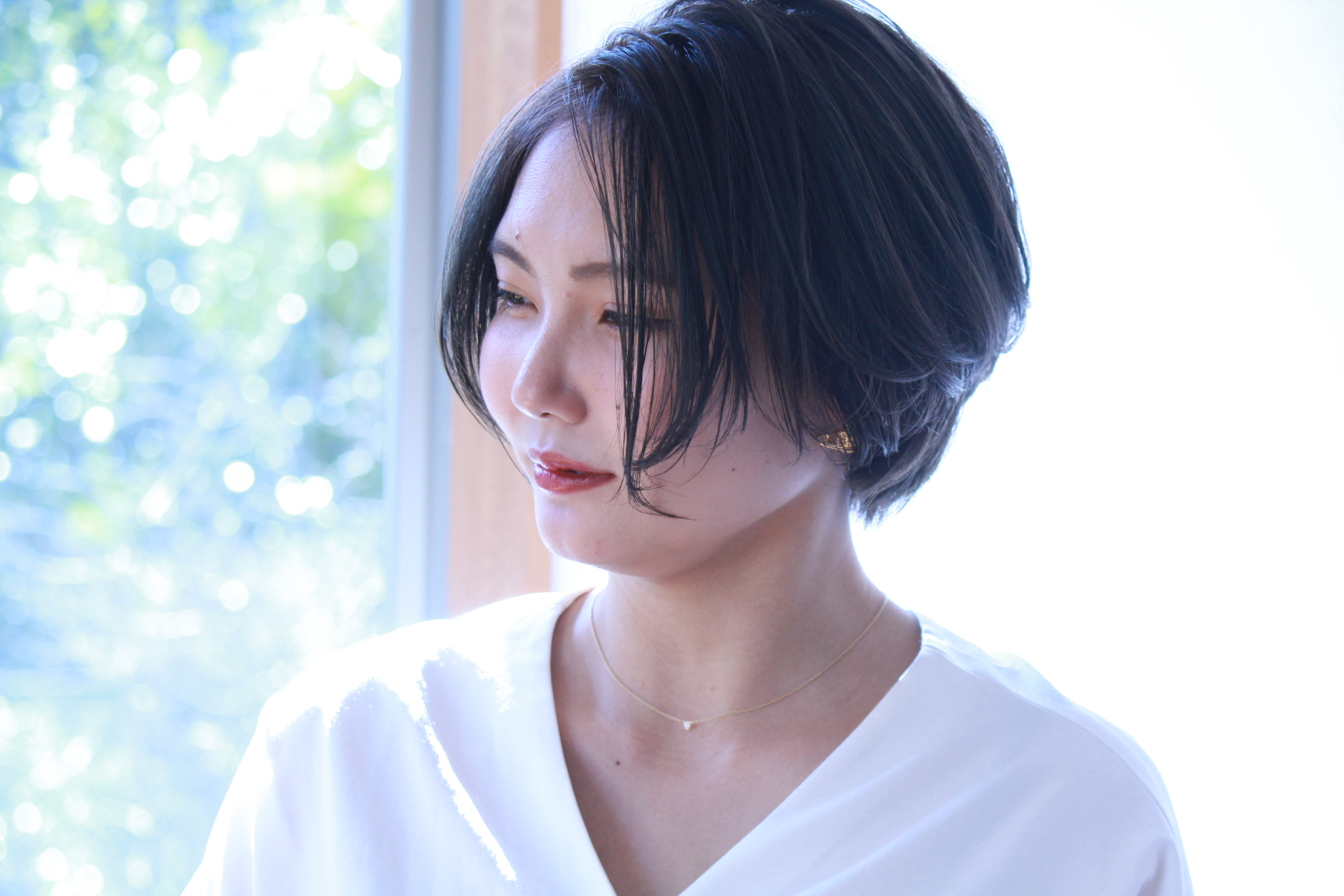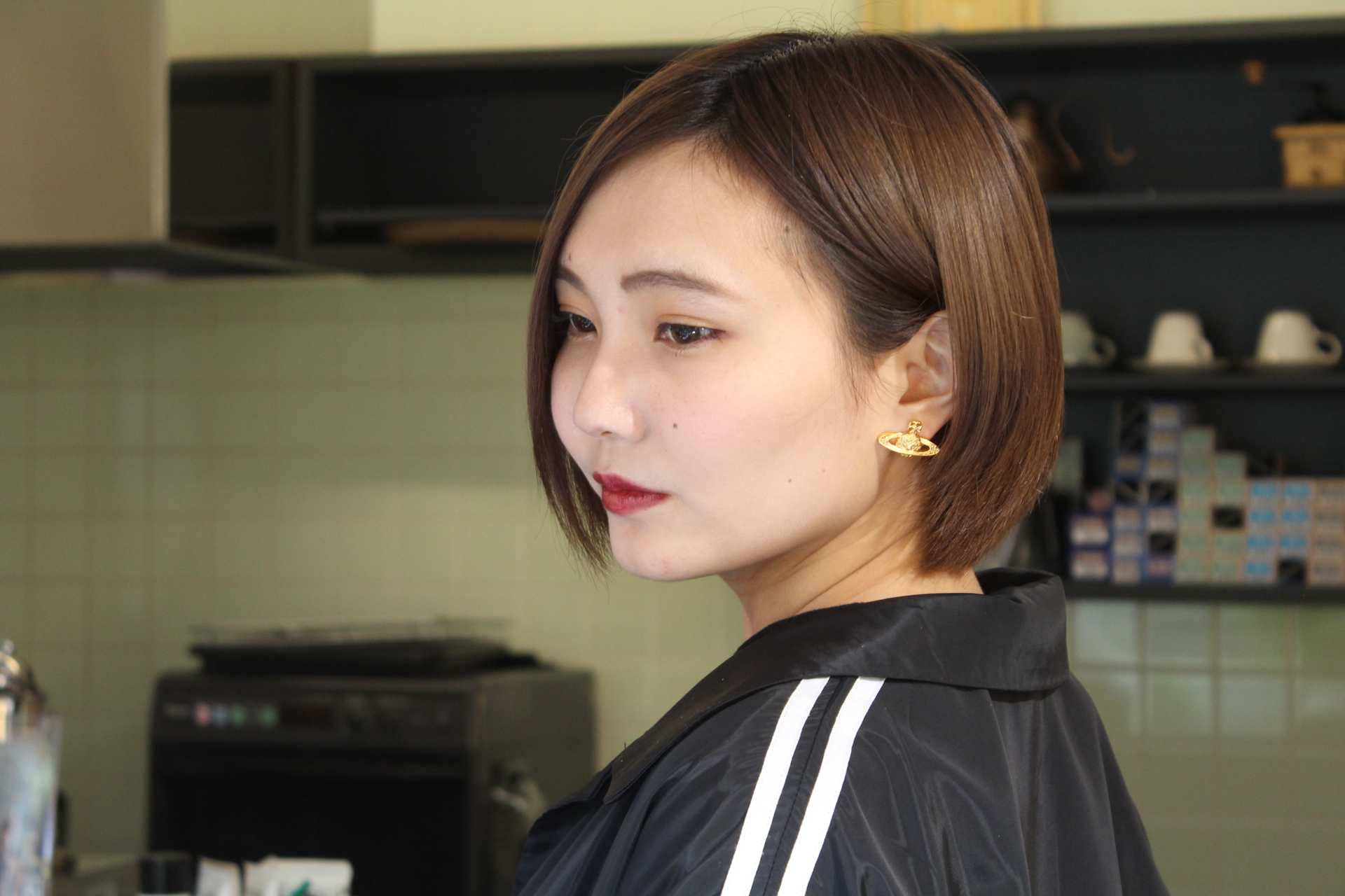 伸びきった不揃いのボブヘアを、きれいに整えました。