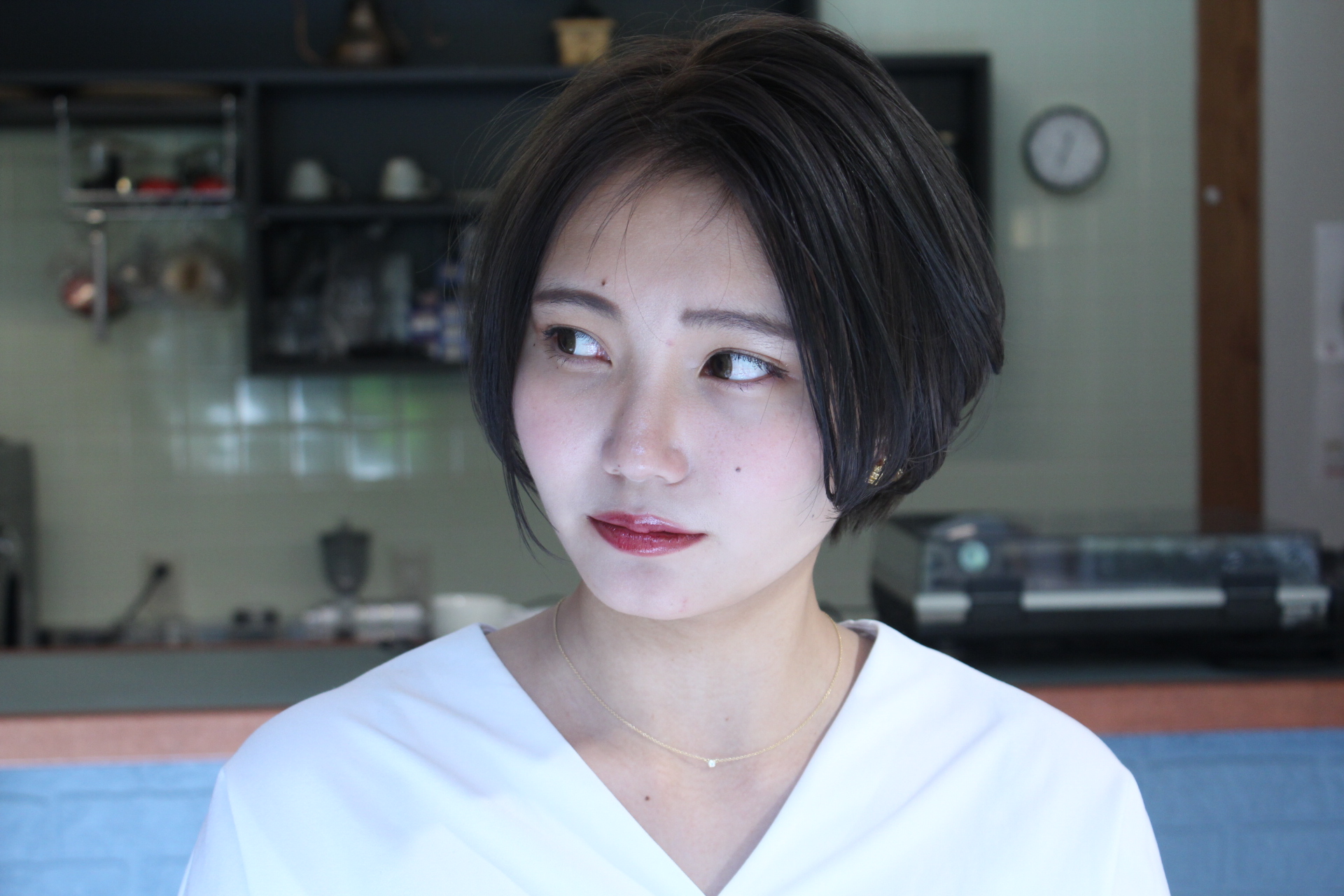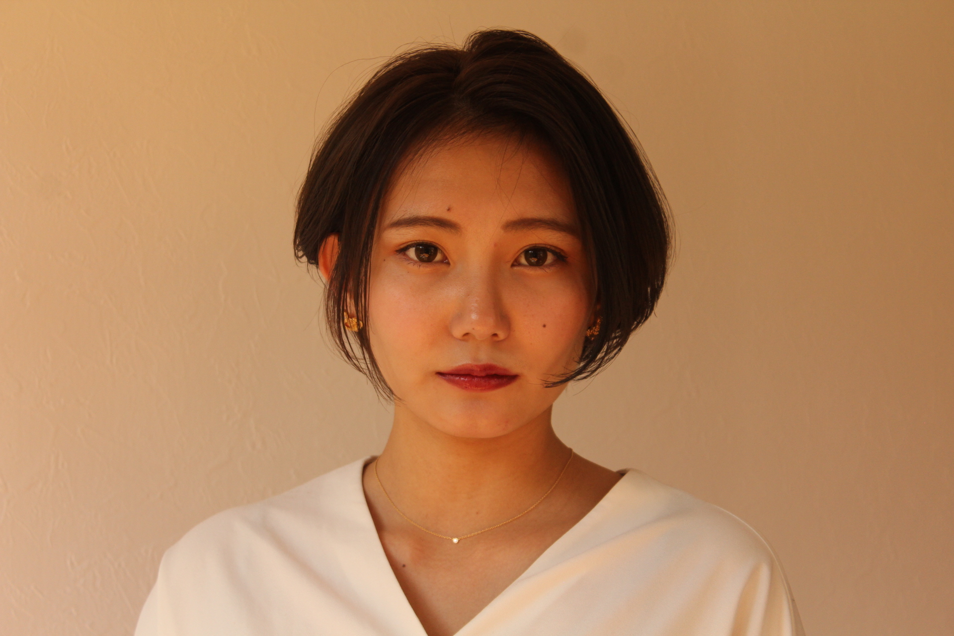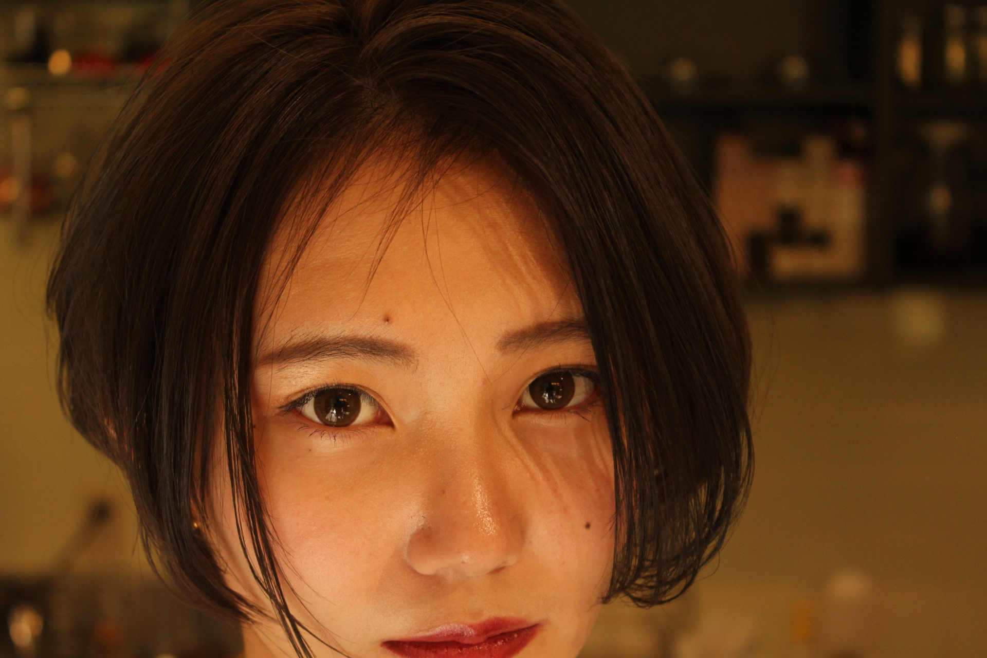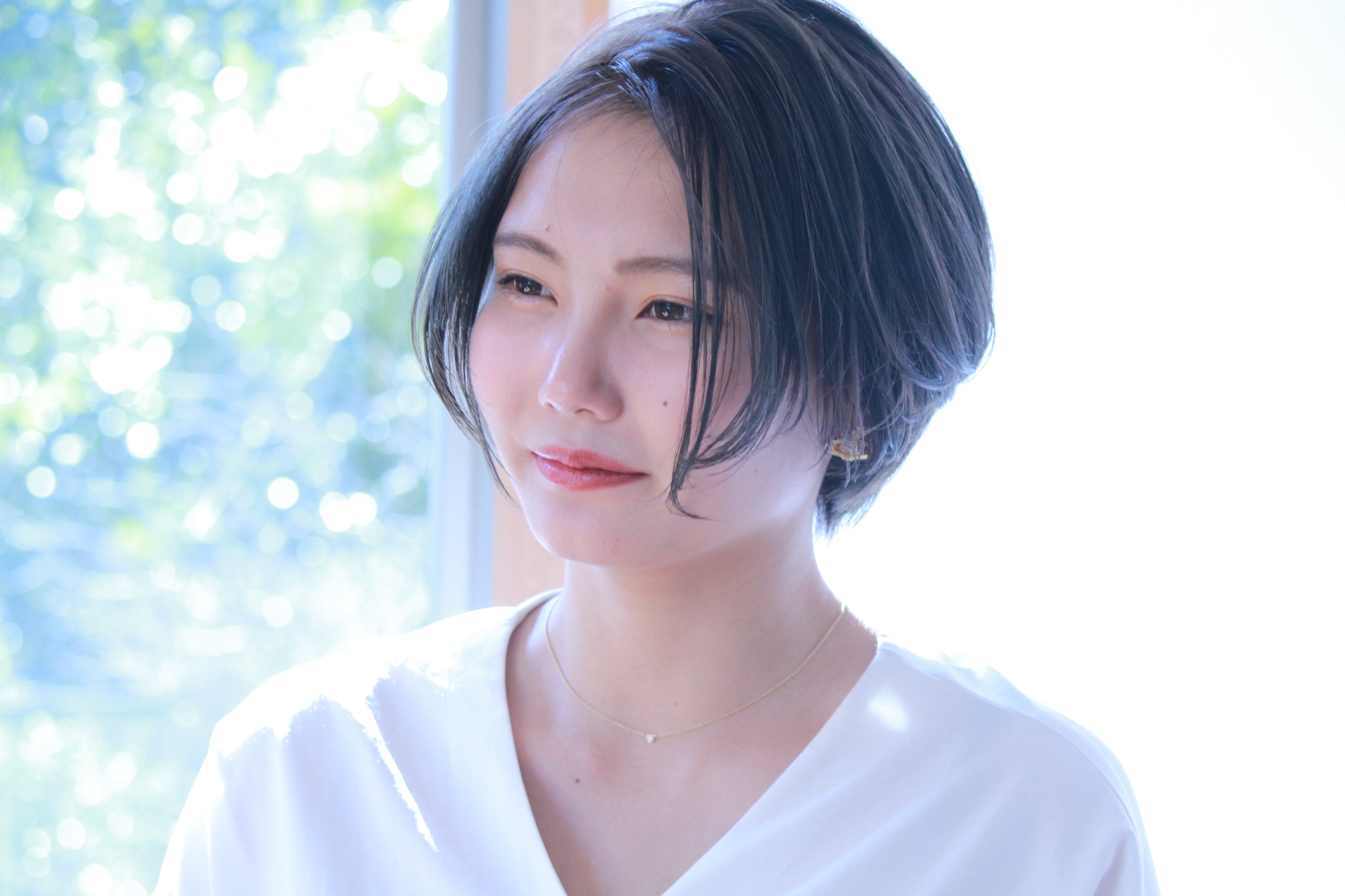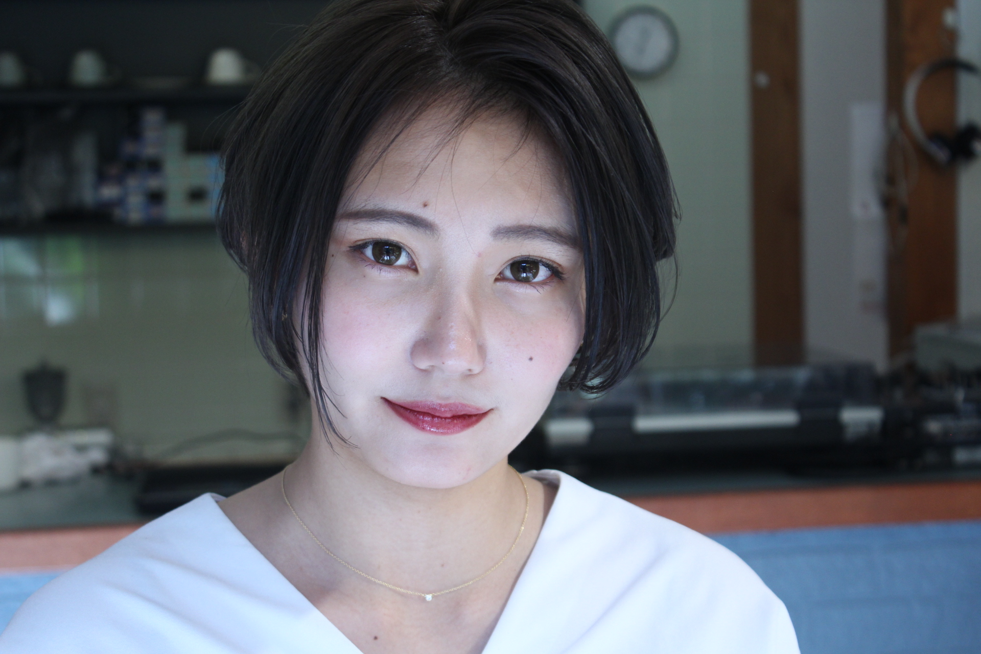 伸びきった不揃いのボブヘアを、きれいに整えました。