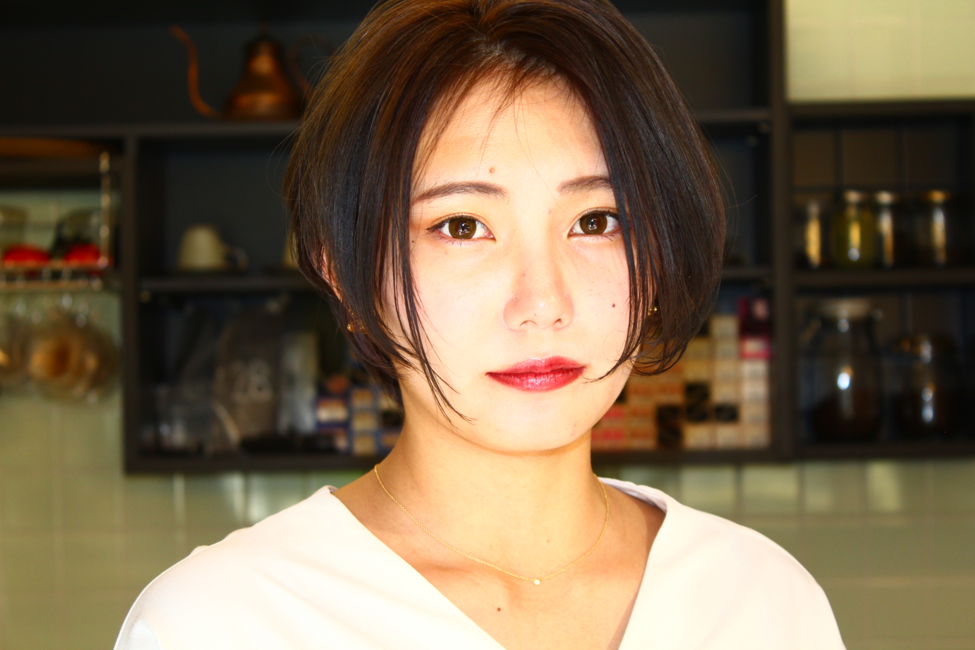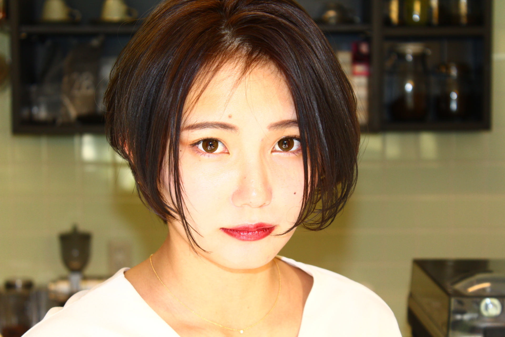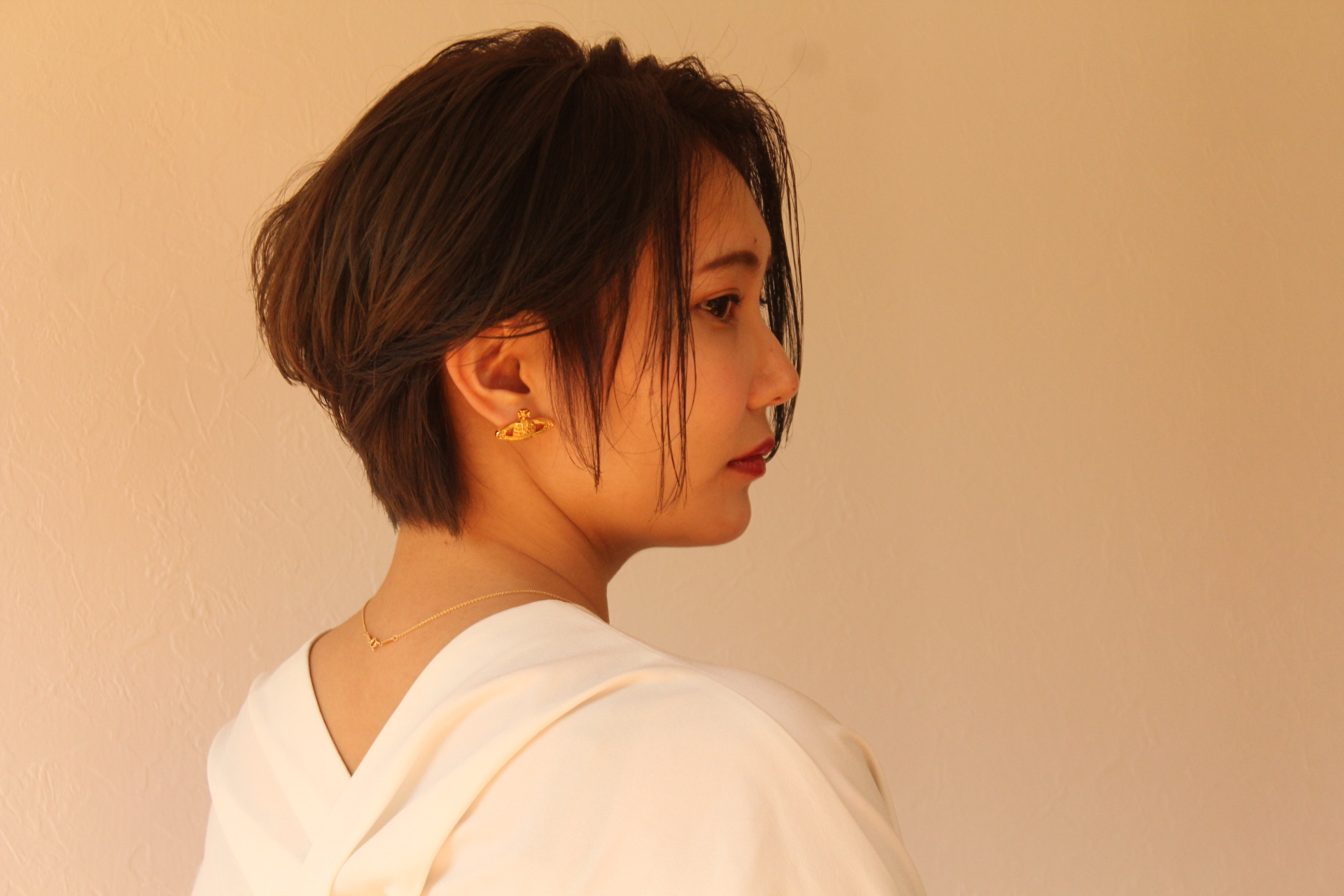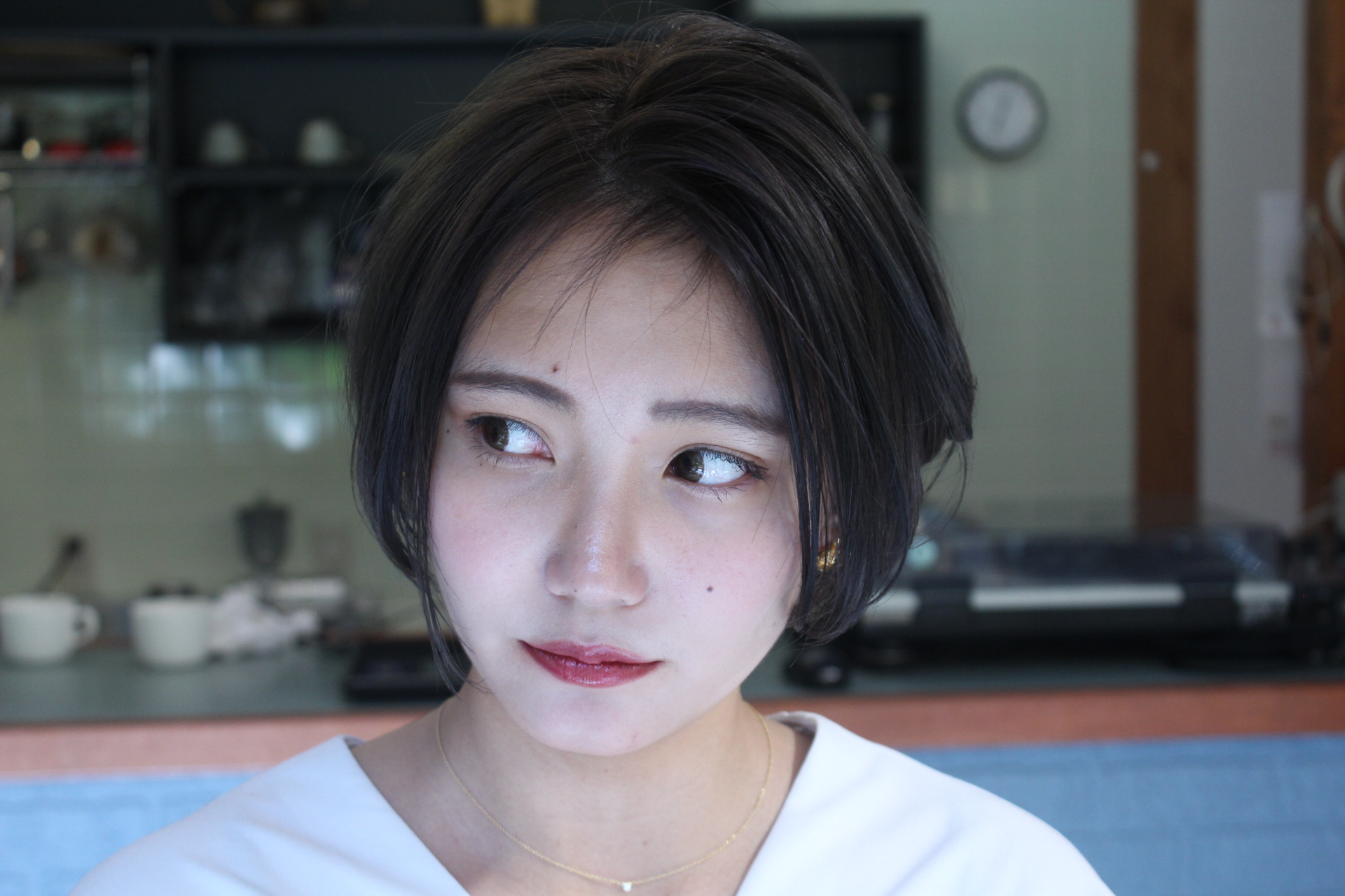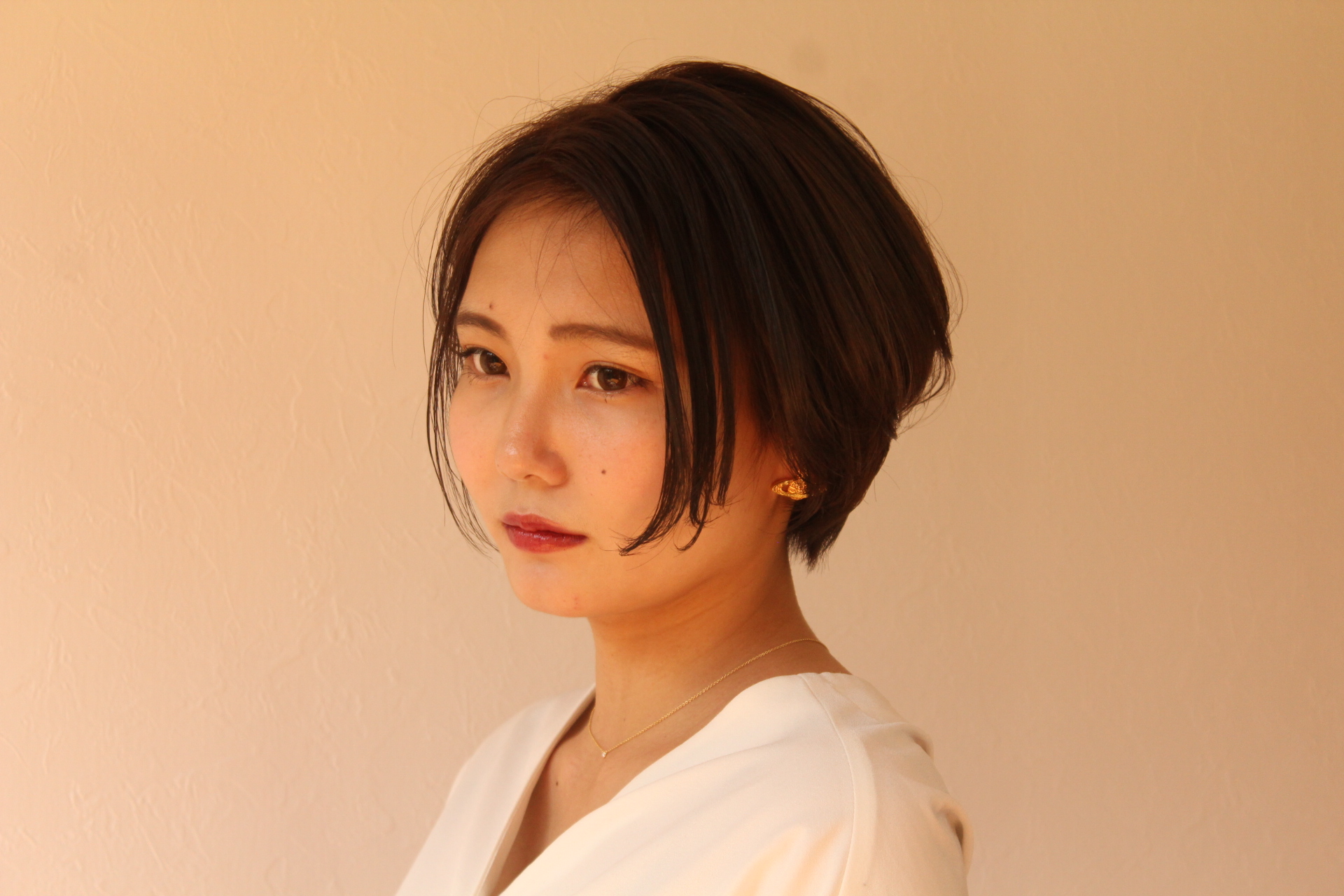 伸びきった不揃いのボブヘアを、きれいに整えました。
